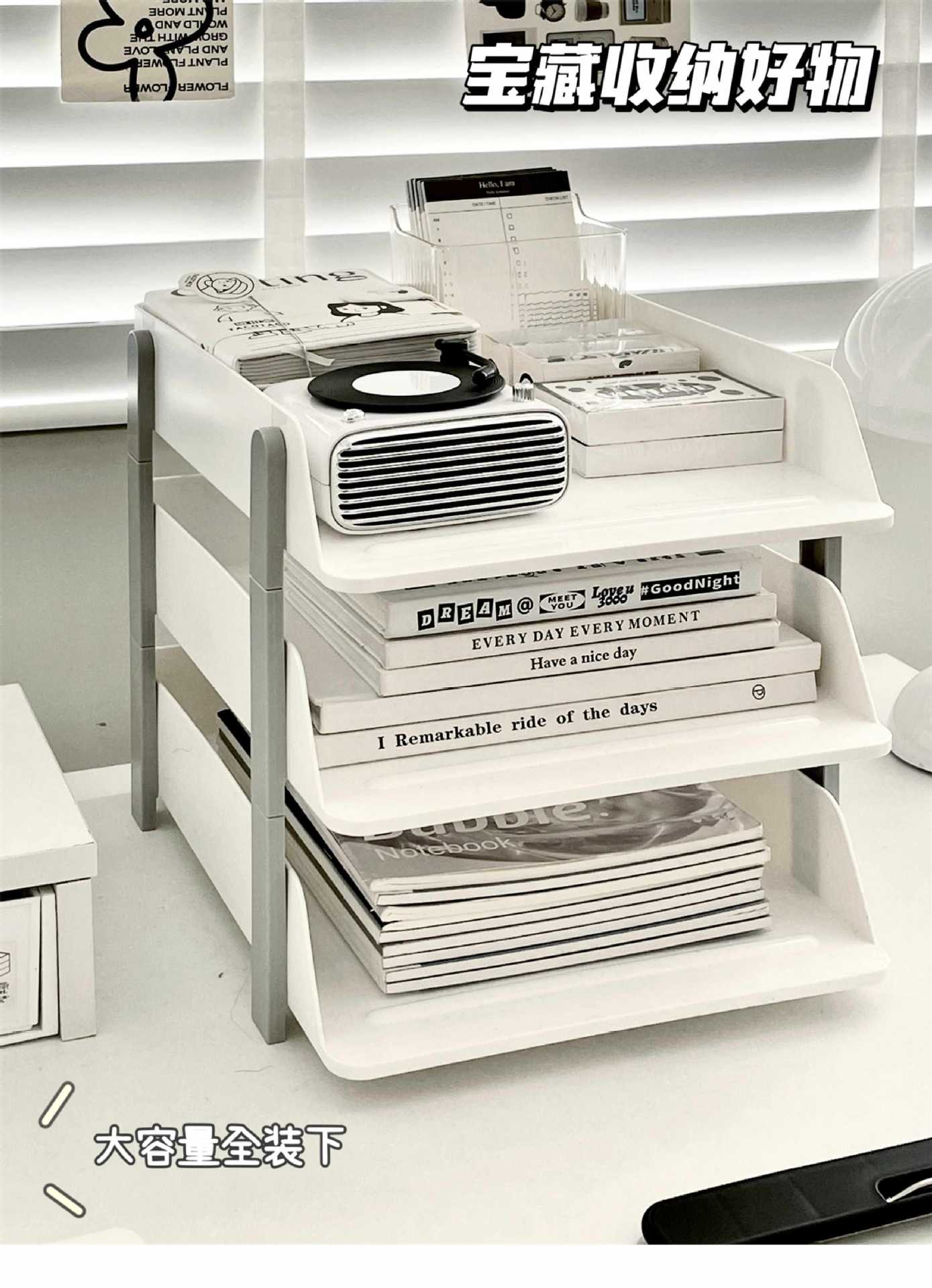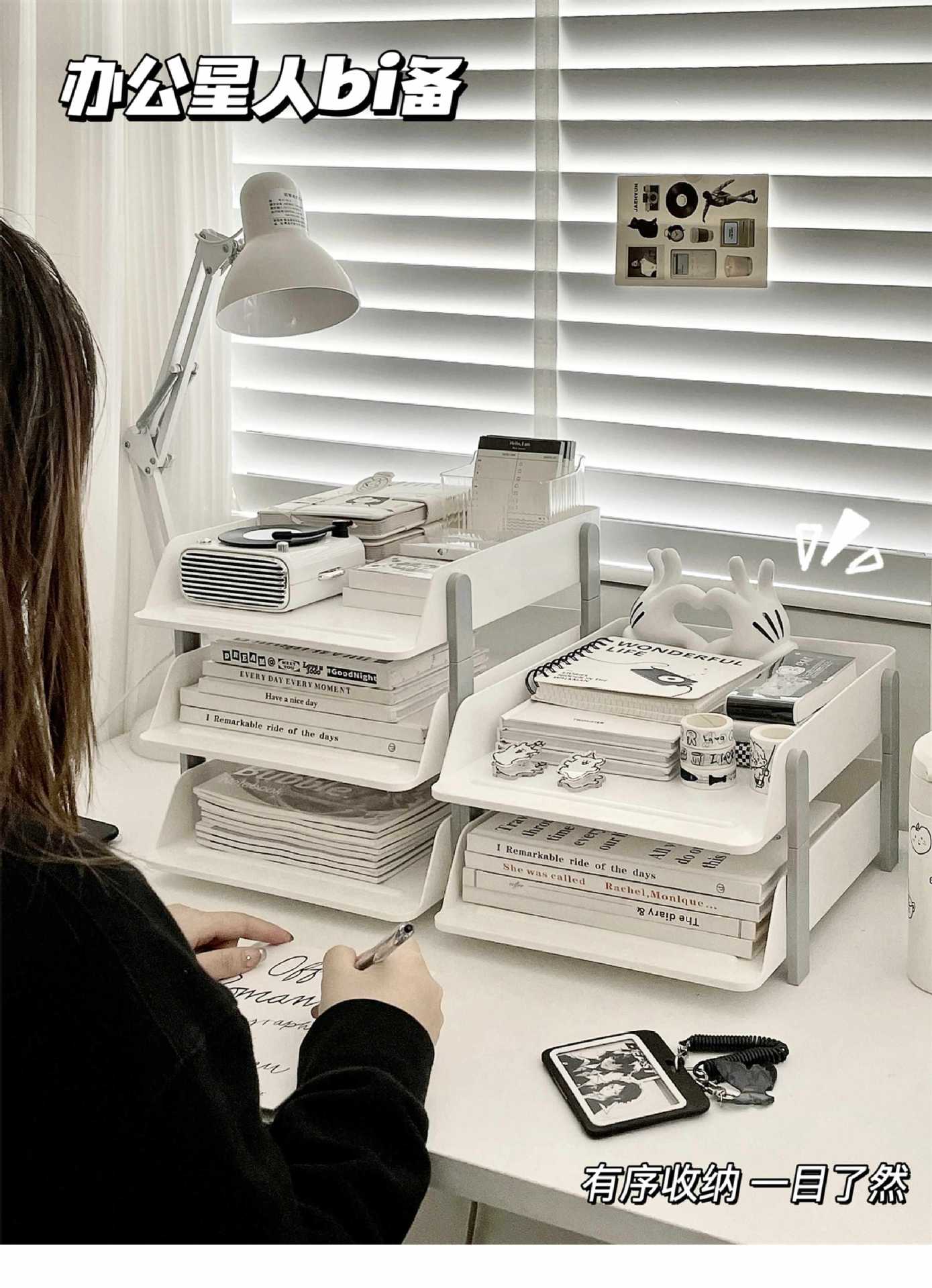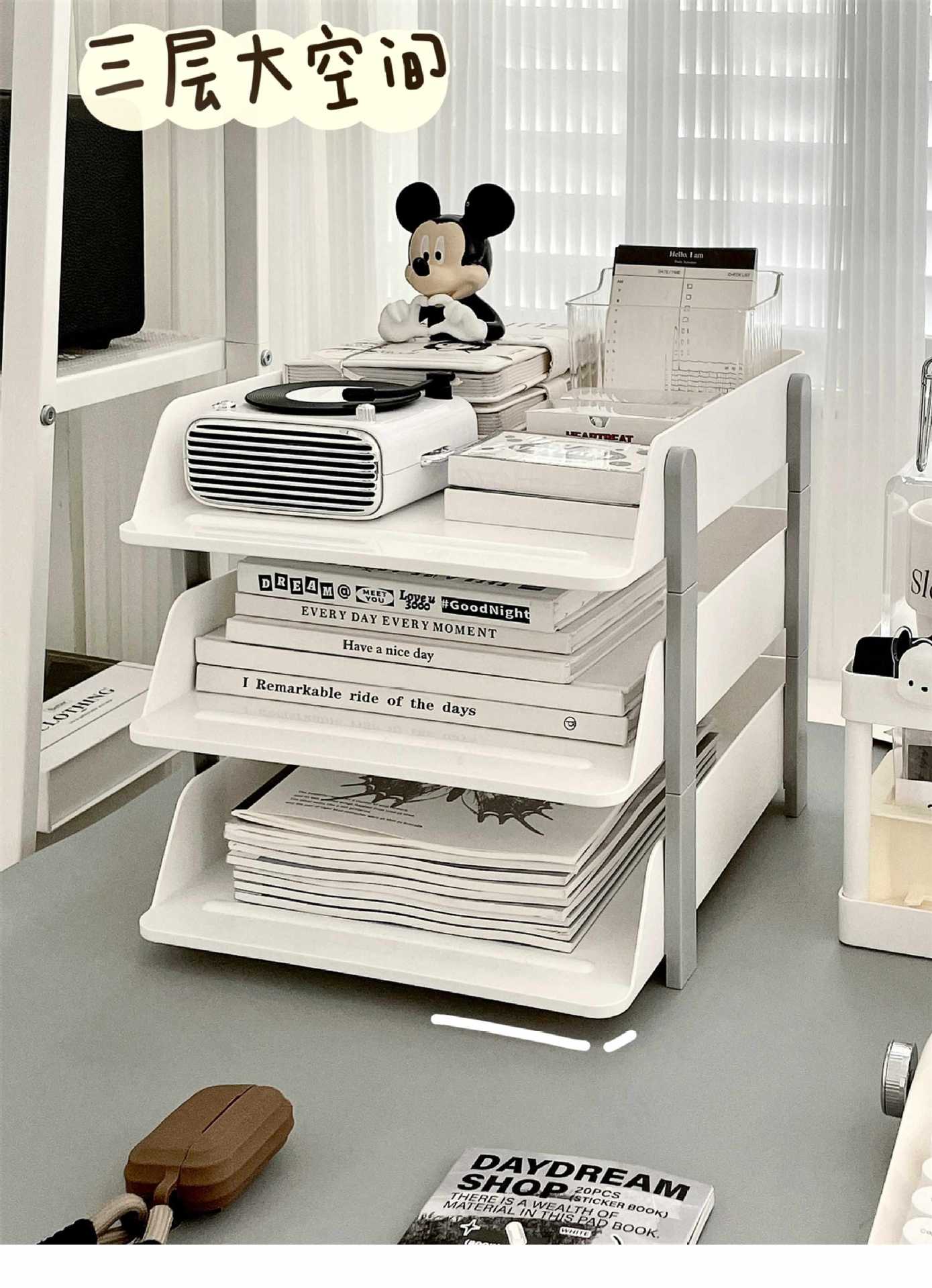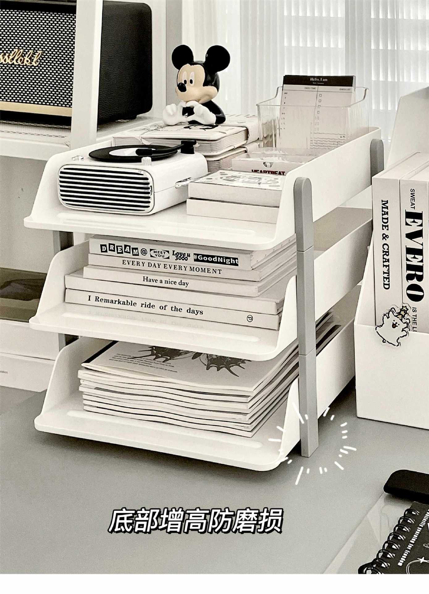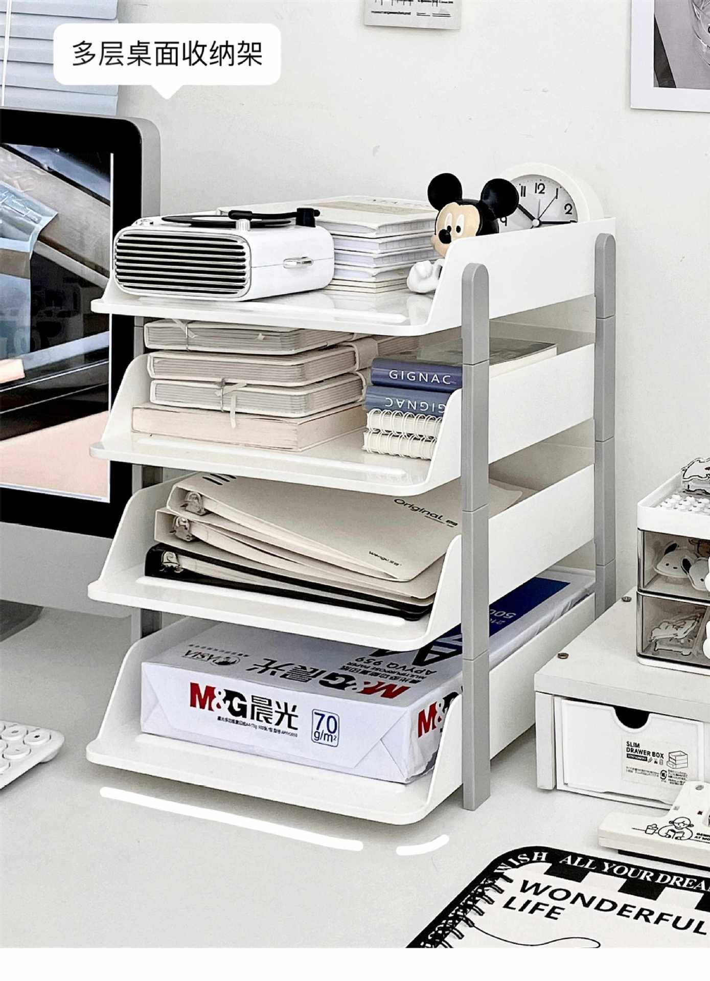 Desk Book Stand Desktop Bookshelf Layered Storage Rack Office Organize Student Desk File Folder Storage