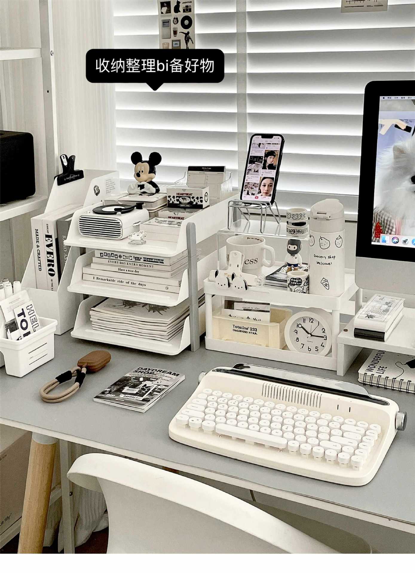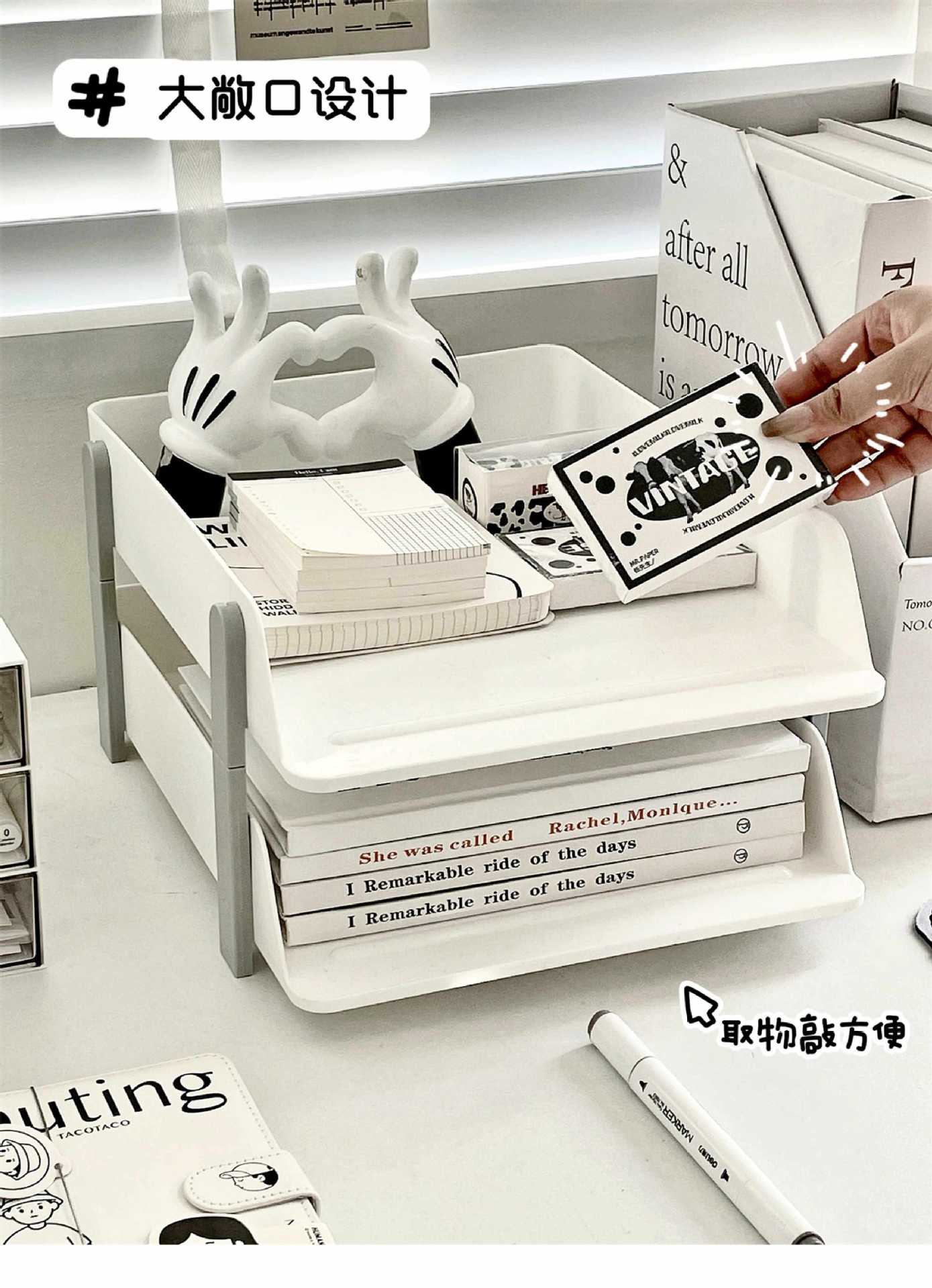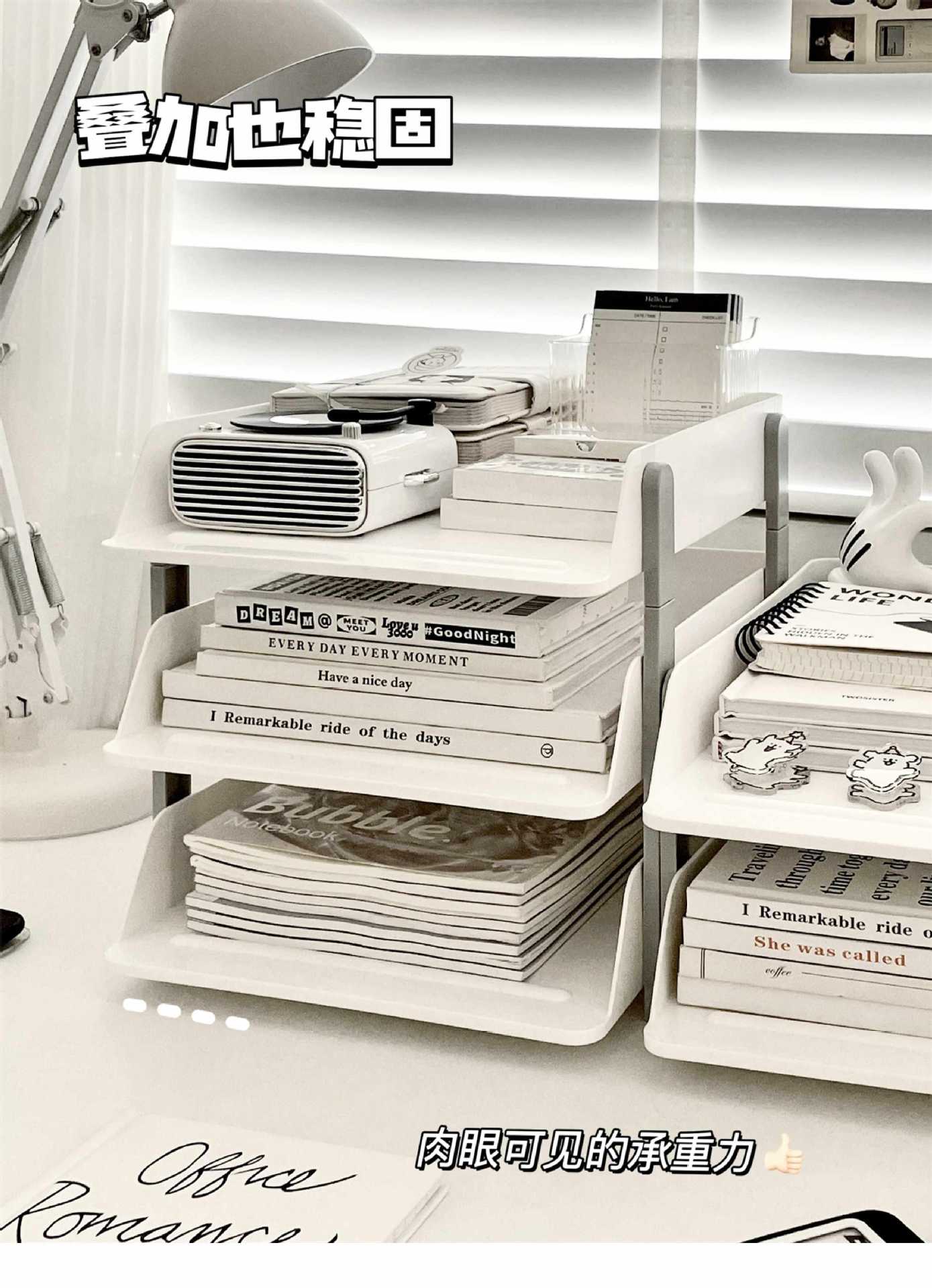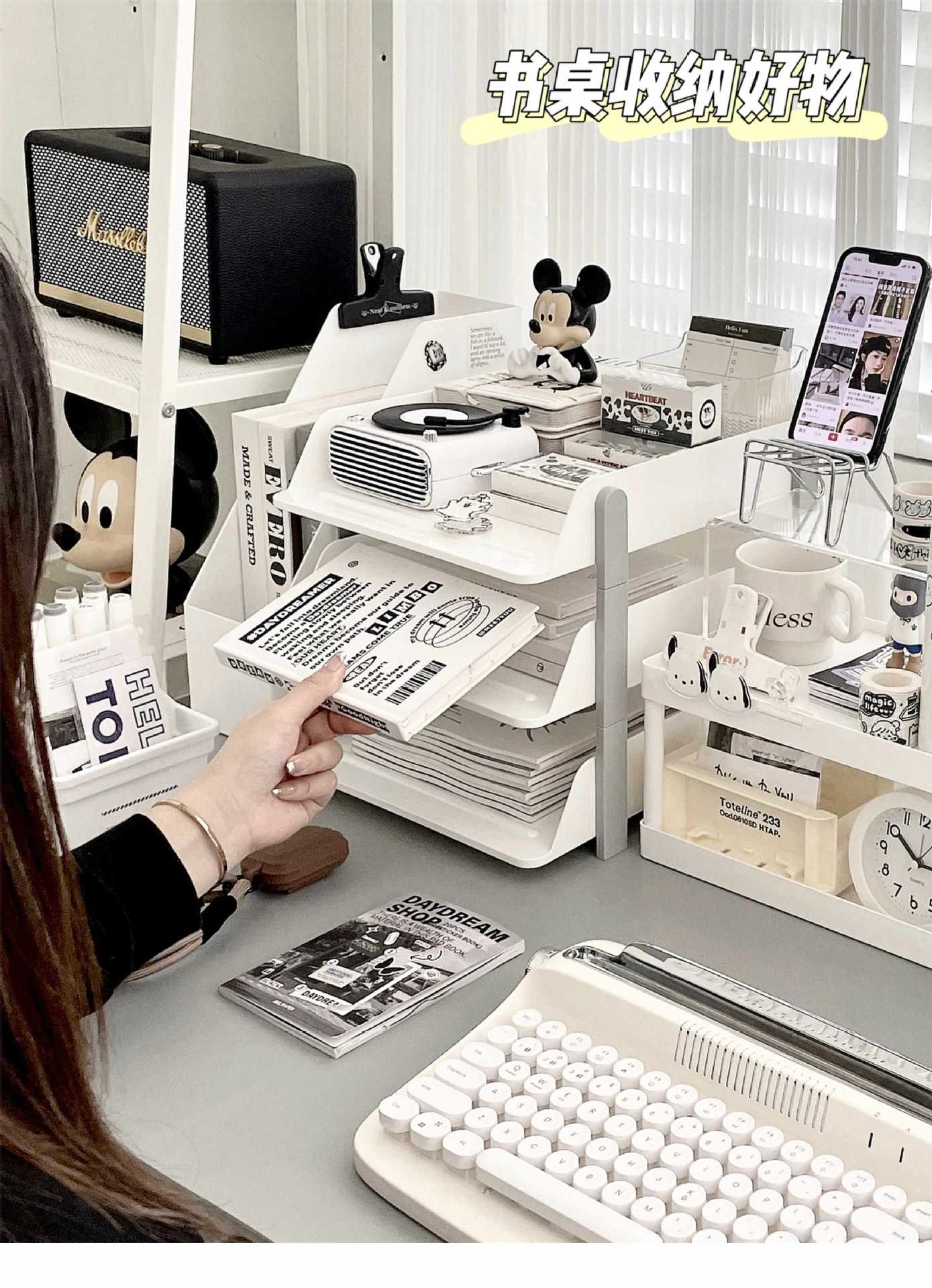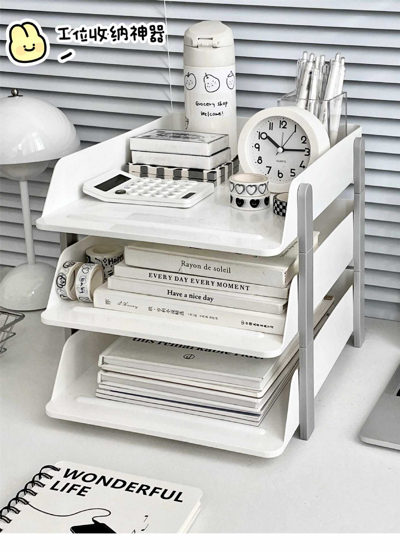 Desk Book Stand Desktop Bookshelf Layered Storage Rack Office Organize Student Desk File Folder Storage