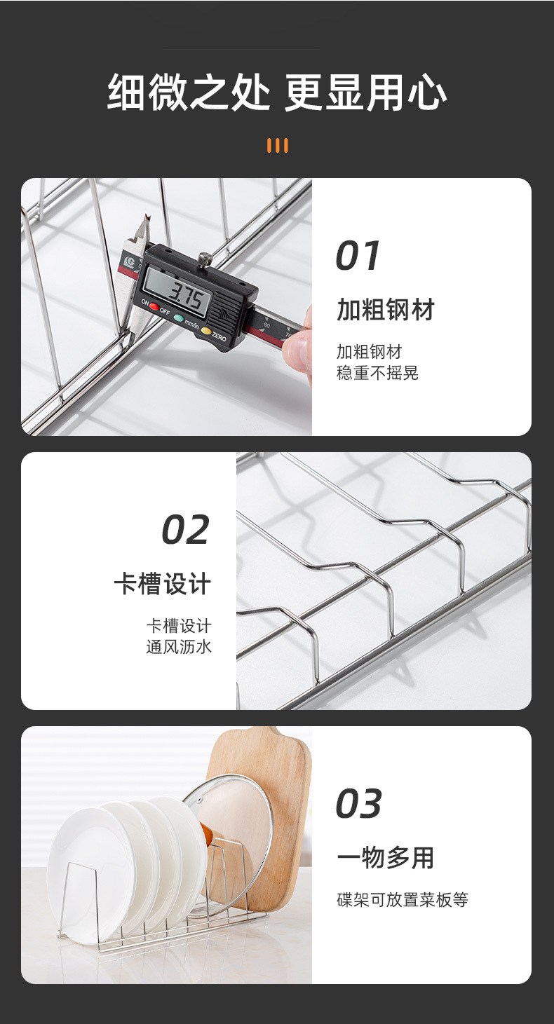 Dish storage shelf stainless steel kitchen draining drawer basket built-in bowl and plate storage cabinet