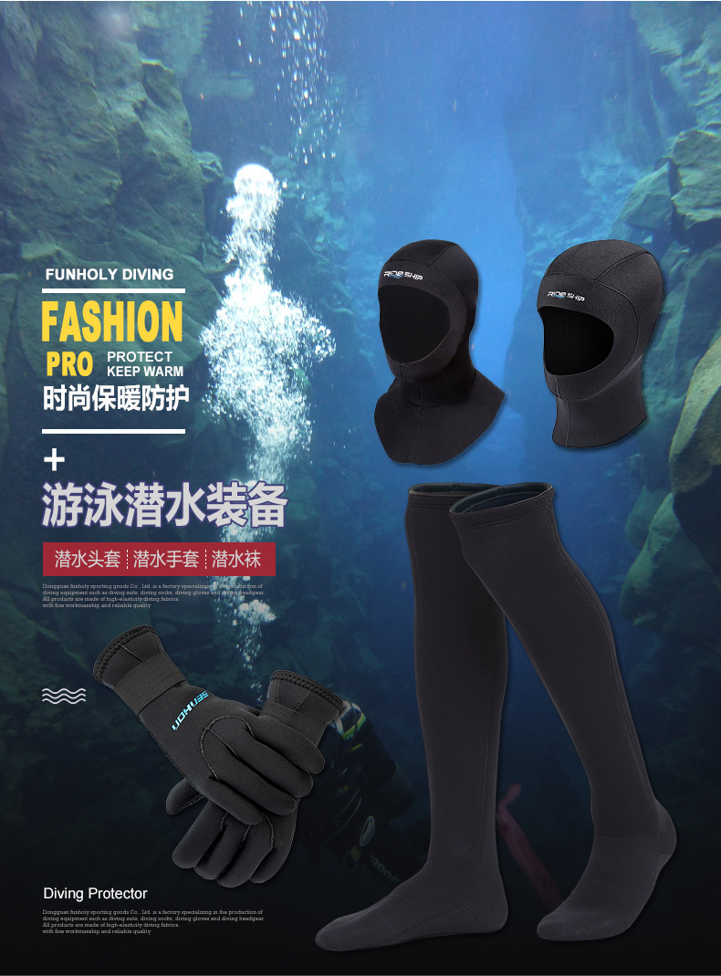 Diving warm swimming equipment snorkeling cold 3mm diving gloves 5mm diving socks diving cap waterproof stockings