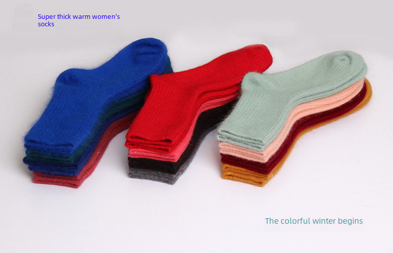 Double Needle Rabbit Wool Socks Women s Winter Thickened Warm Lined Velvet Medium Tube Super Thick Rabbit Wool Women s Cashmere Winter Women s Socks
