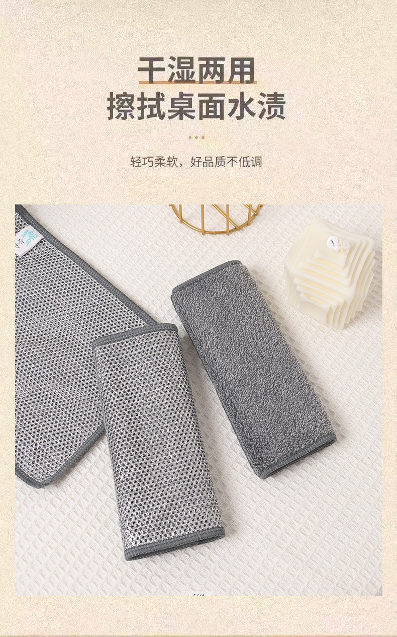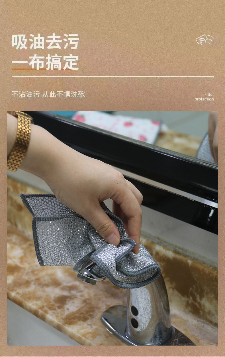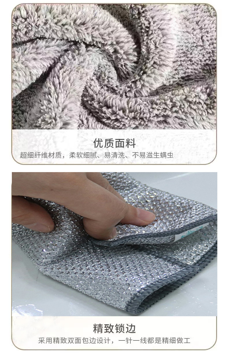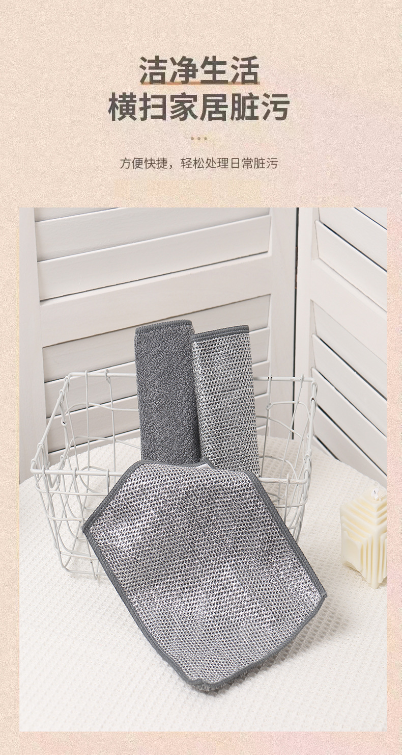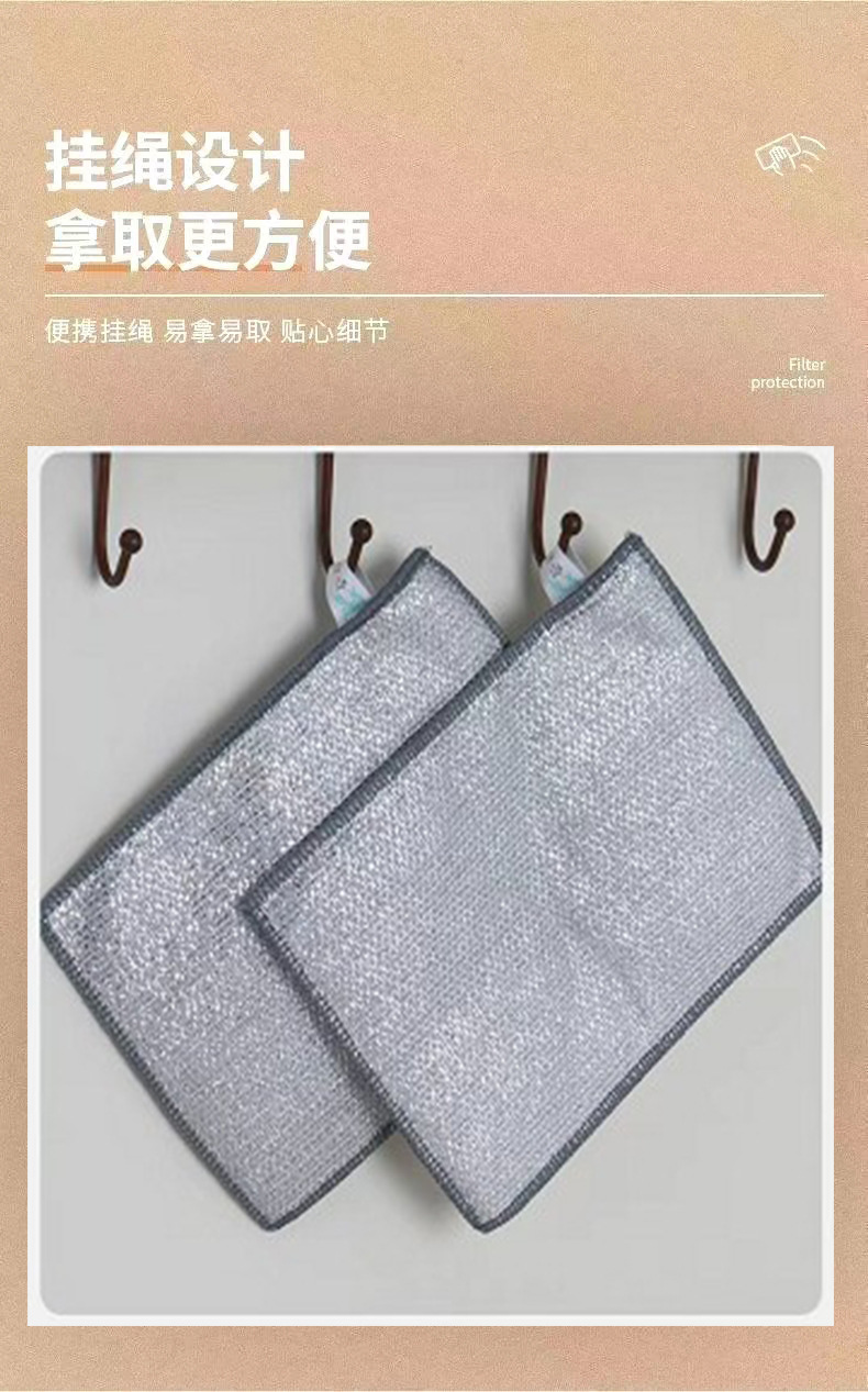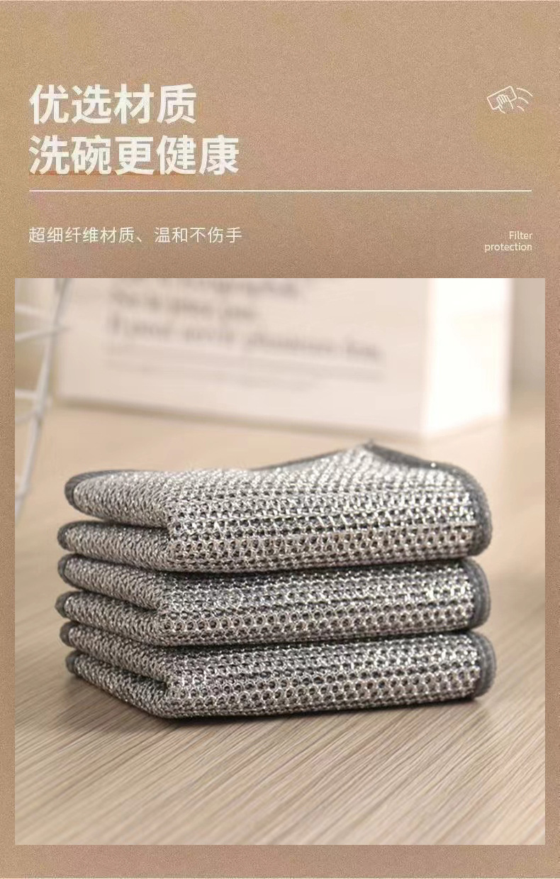 Double-layer bamboo charcoal silver silk dish cloth household stove washing pot non-stick oil stain removing single-layer rag steel wire dish towel