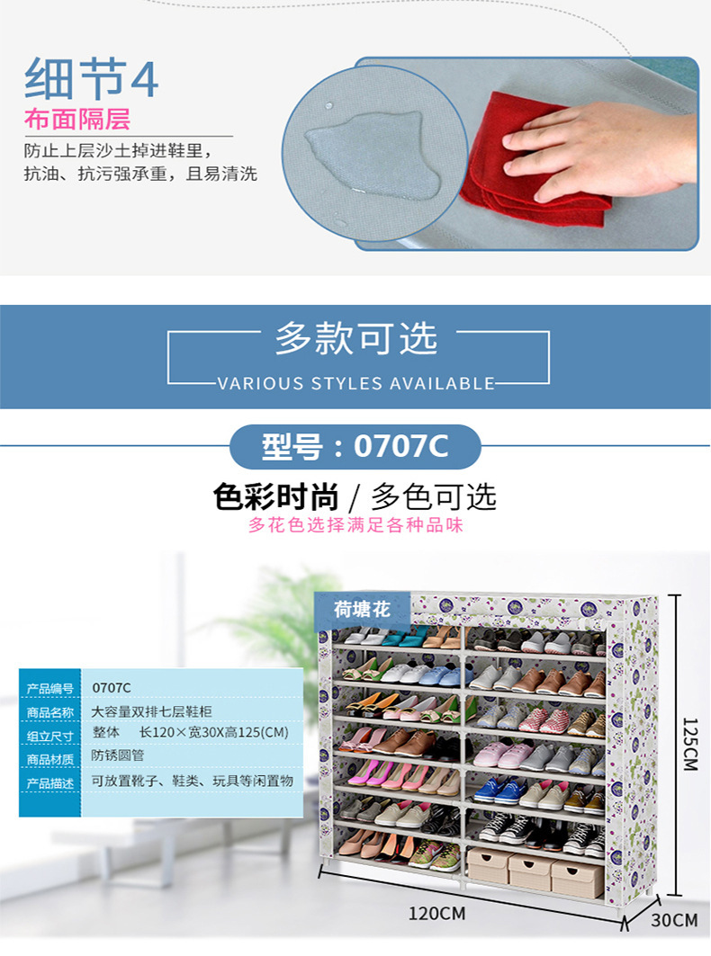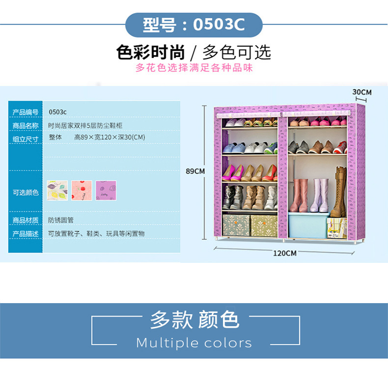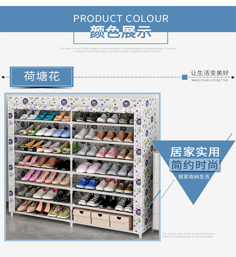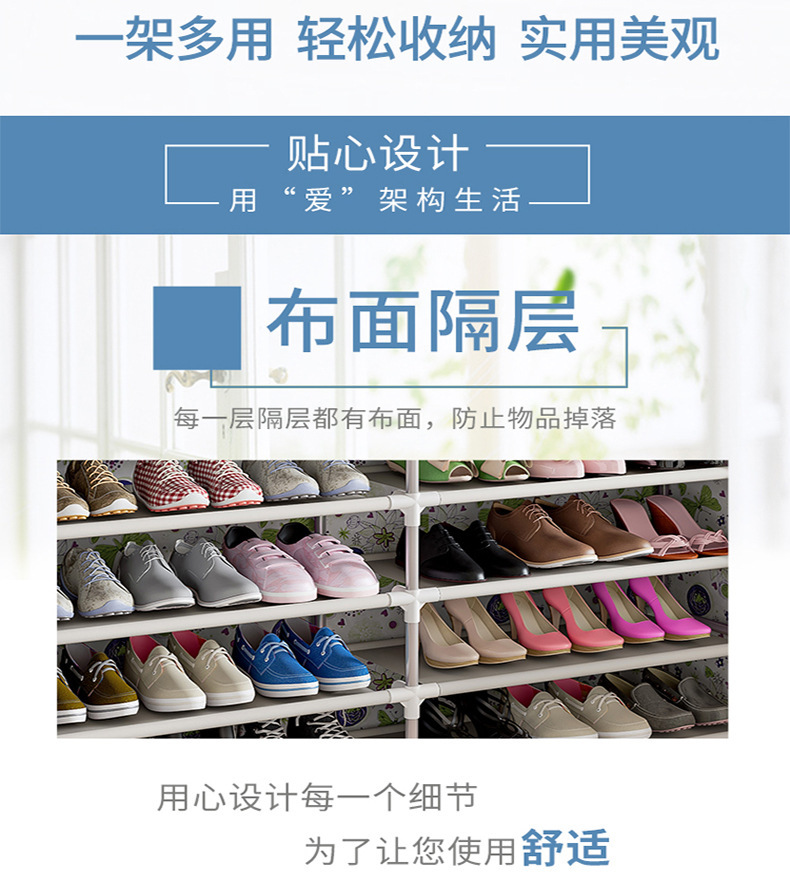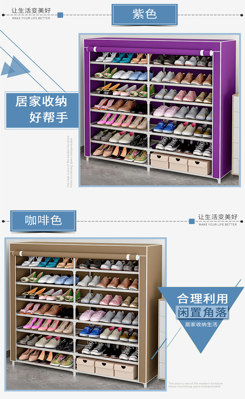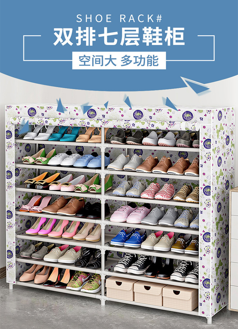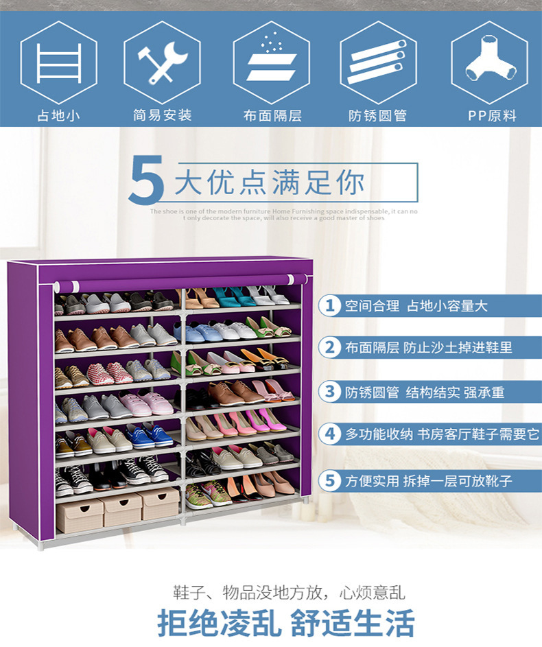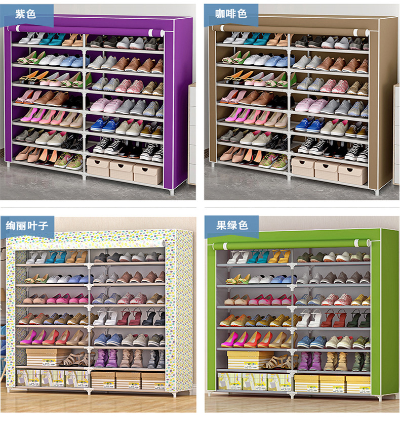 Double-row multi-layer combination shoe rack with zipper simple cloth shoe cabinet multi-layer storage cabinet dormitory student shoe rack dustproof