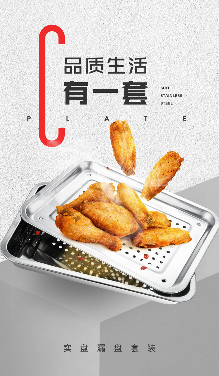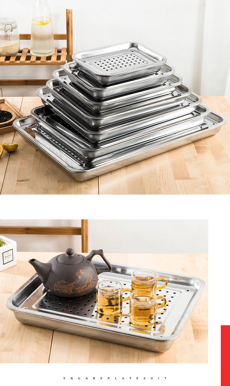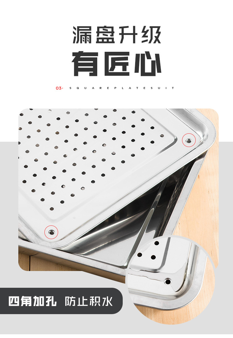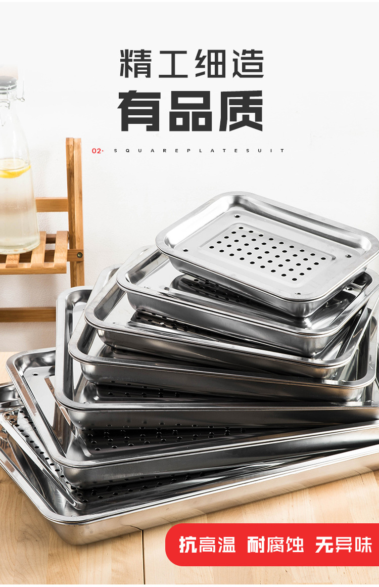 Draining square plate stainless steel rectangular tea tray double-layer dumpling plate commercial oil draining plate steaming plate leaking plate relatives