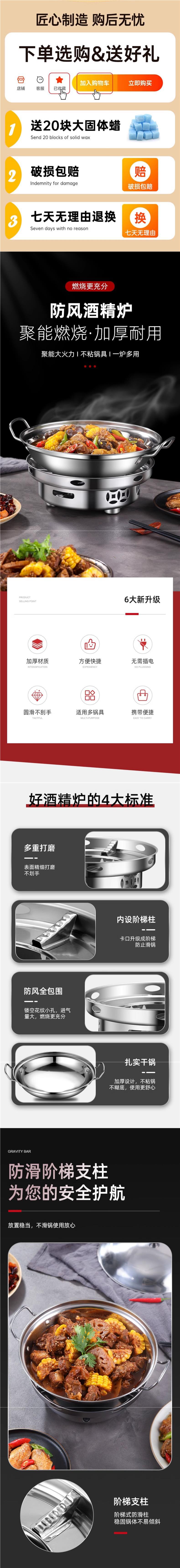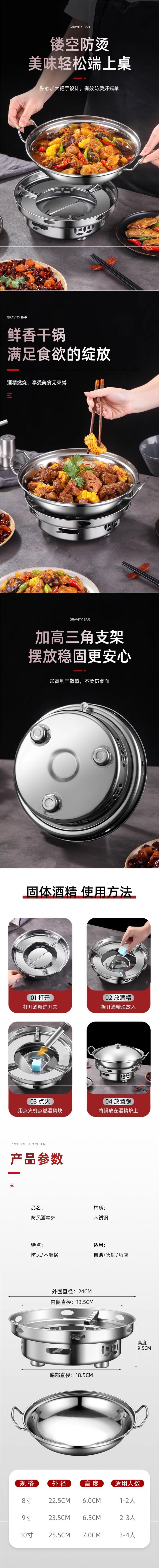 - Windproof alcohol stove 22cm thick hot pot [no cover] to send 20 pieces of solid wax