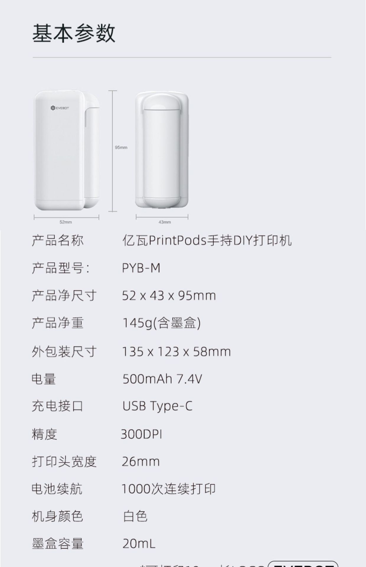 EVEBOT PrintPods watt mini handheld tattoo printer personalized DIY tattoo pattern printer