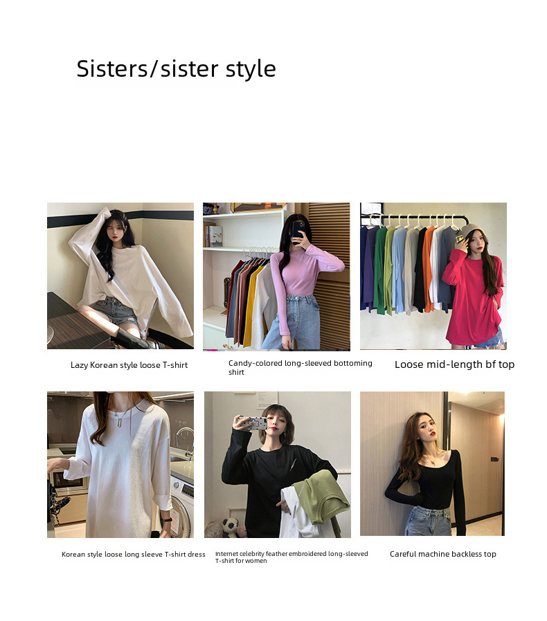 Early Autumn 2023 New Korean Style Basic Women s Loose Mid length bf Top Simple Western Style Long Sleeve T shirt for Women