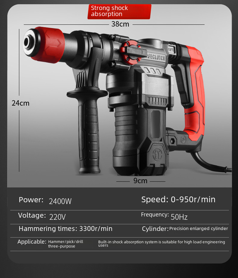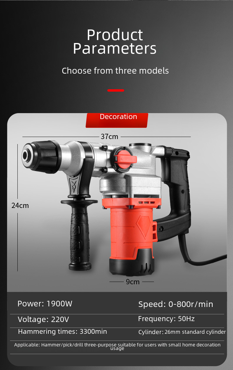 Electric hammer electric pick household specialized in concrete industrial electric drill professional tool multi functional impact drill electric hammer dual purpose