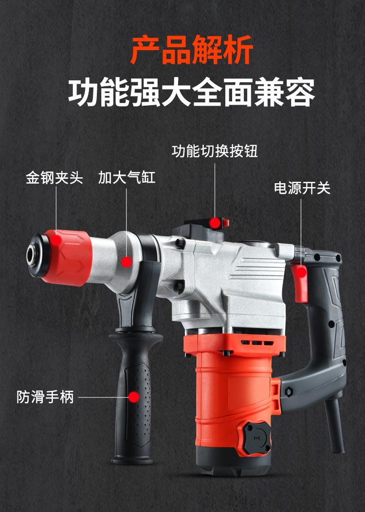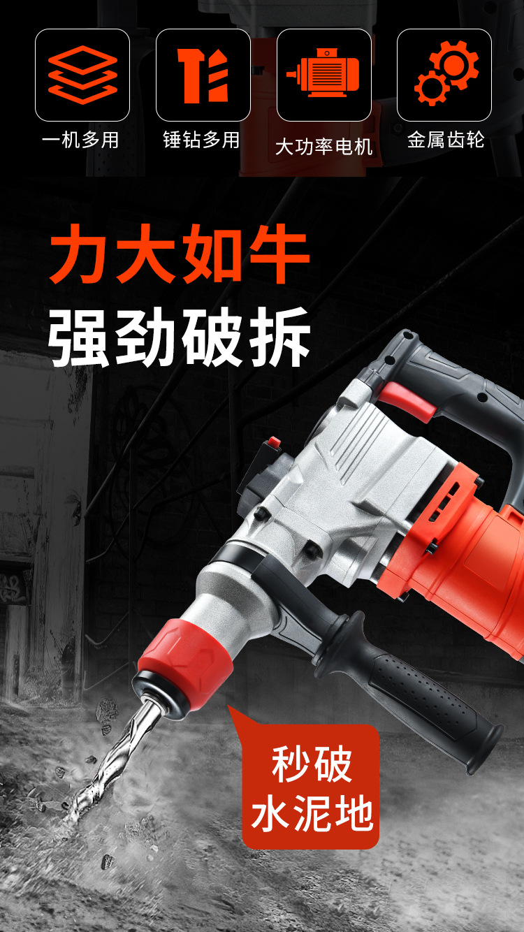 Electric hammer electric pick industrial heavy duty concrete high power electric impact drill household multifunctional electric hammer wholesale