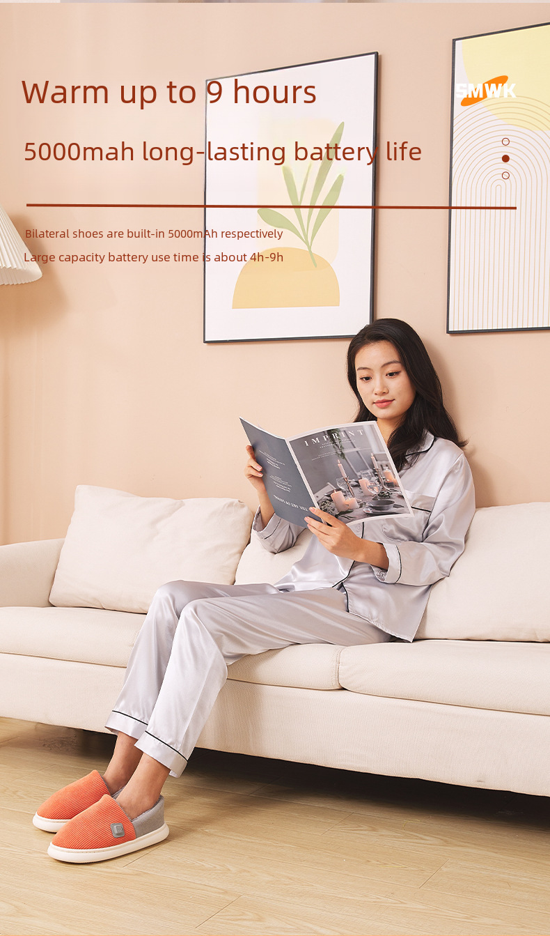 Electric heating shoes household rechargeable heating walking foot warmer artifact heating men s and women s new winter cotton padded slippers