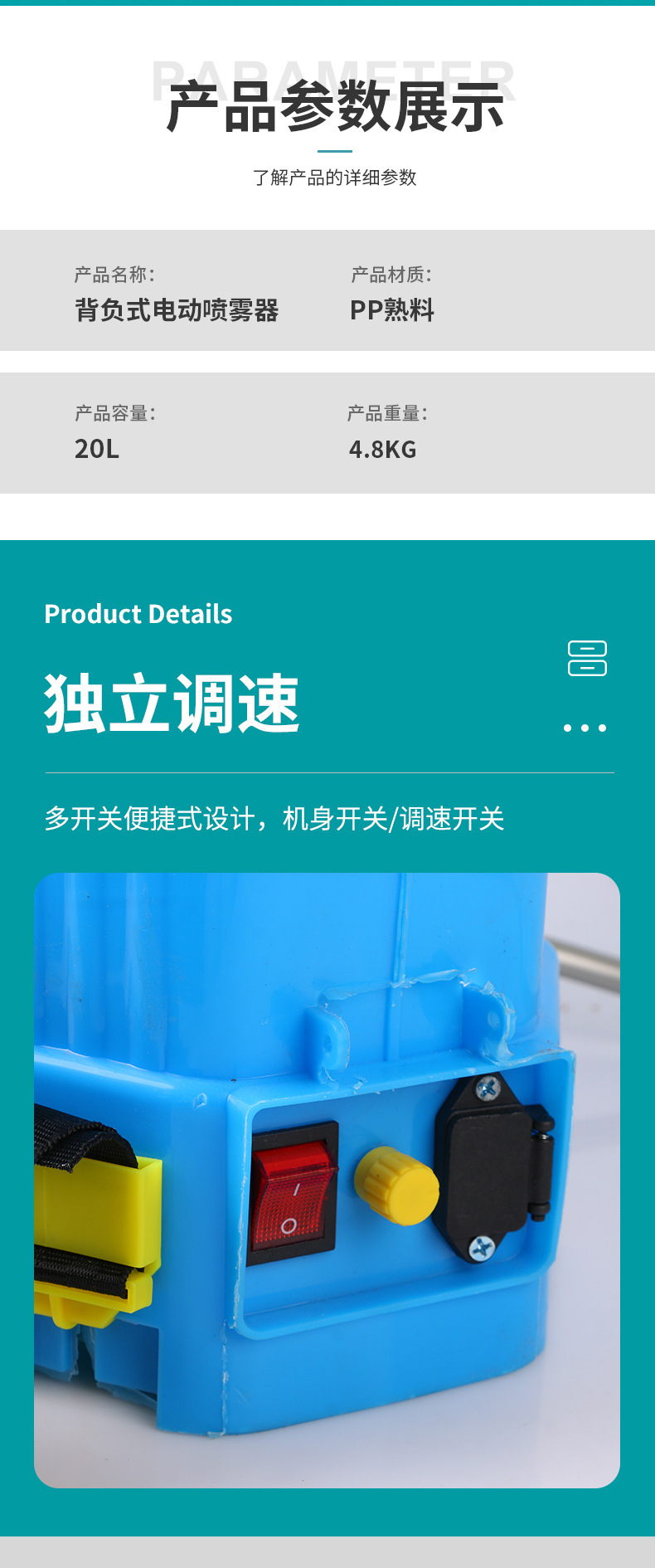 - 20L octagonal handle speed control (double switch) 8-ampere lead battery 4.2kg