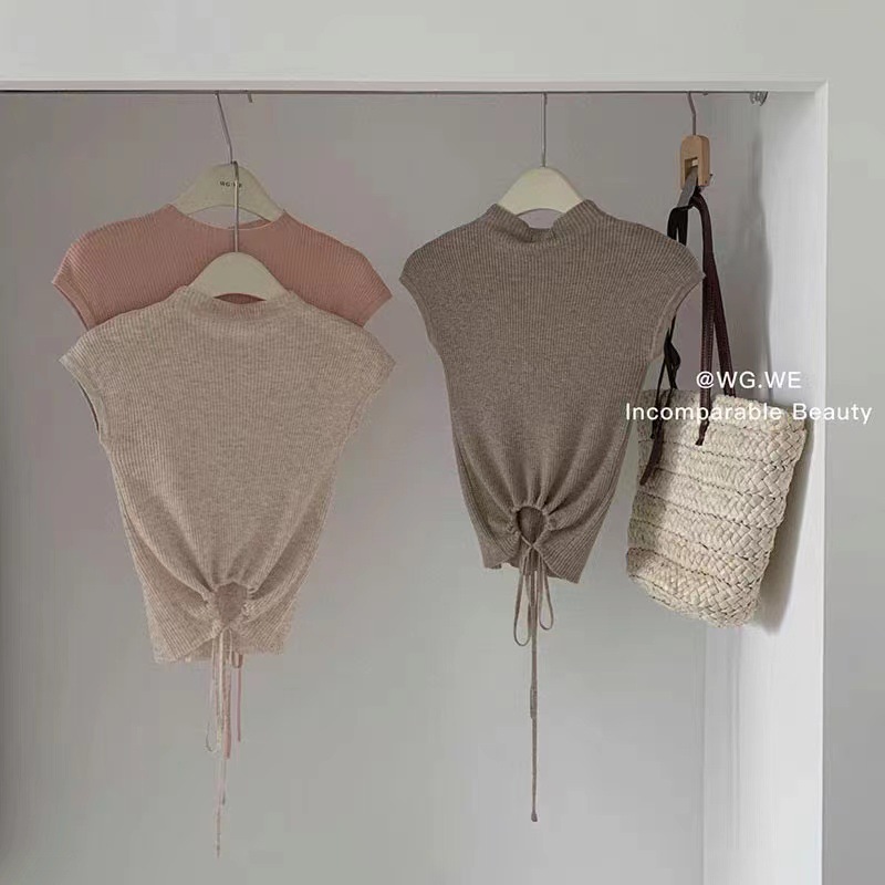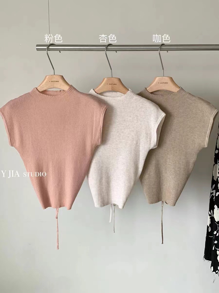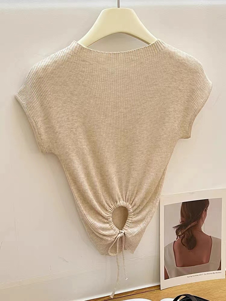 Elegant Strap Short sleeved Sweater Women s Summer New Sexy Hollow Half high Collar Short Design Niche Top