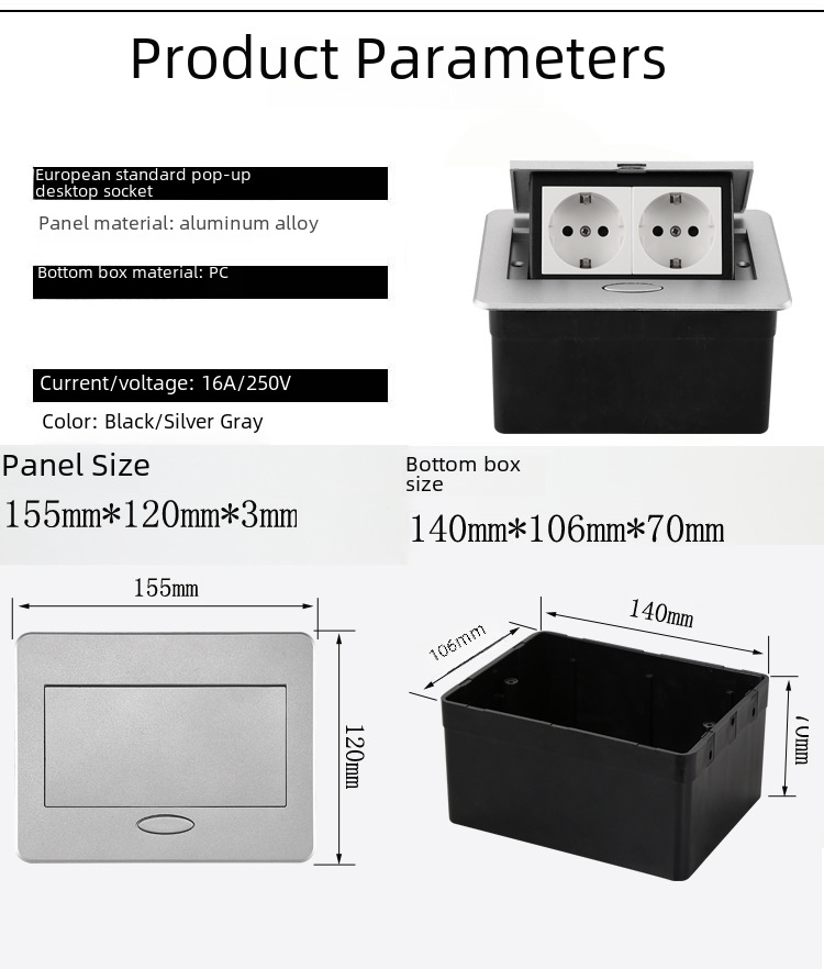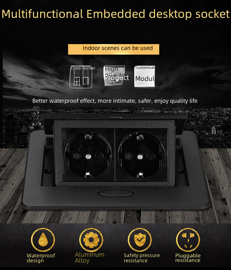 Embedded invisible European standard desktop socket concealed pop up network French standard German standard desk power socket