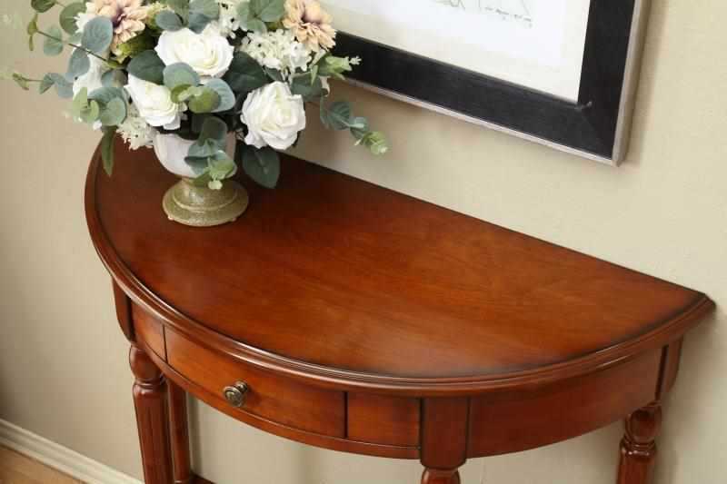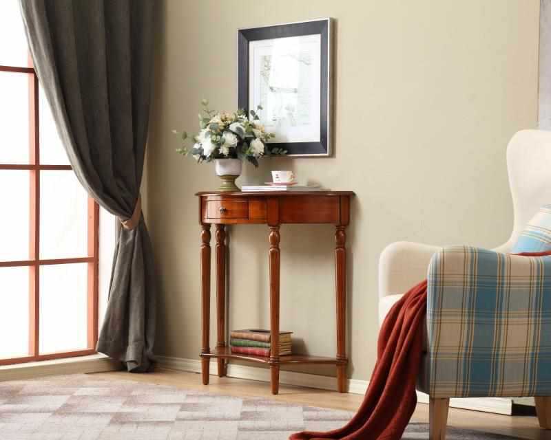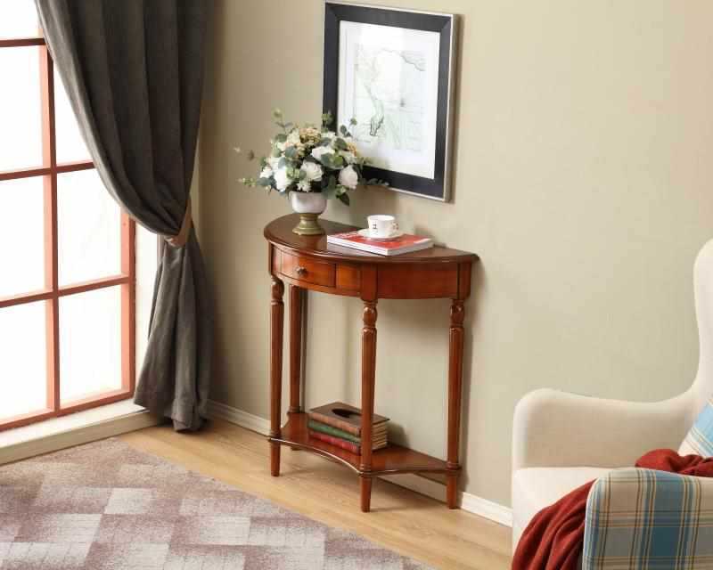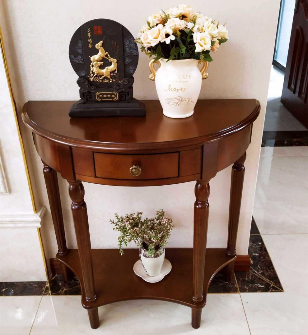 European Style Solid Wood Entrance Table Partition Cabinet American Style Entrance Cabinet Long Table Wall Corridor Half Circle Entrance Table New Chinese Style
