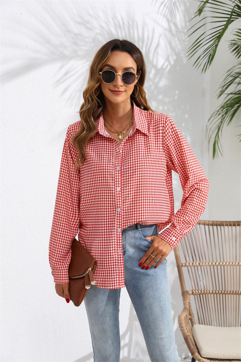 European and American Amazon Women s Top Spring and Autumn Top Cross border Trade Lar Plaid Loose Casual Long sleeved Shirt