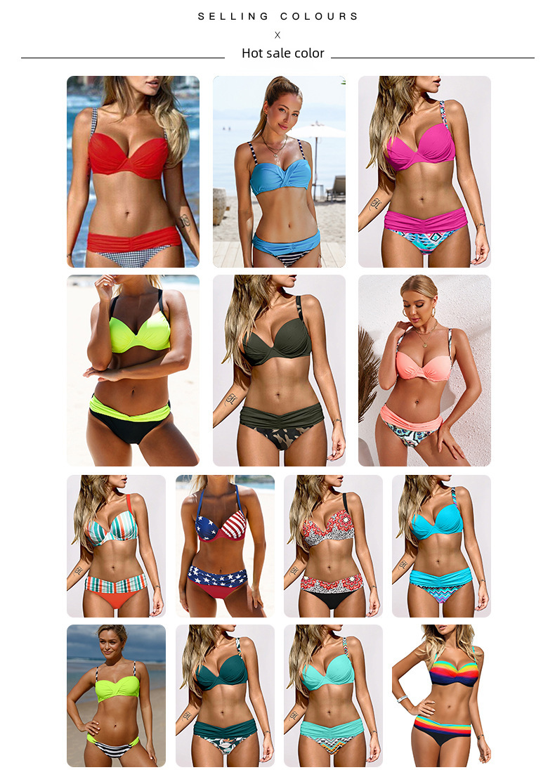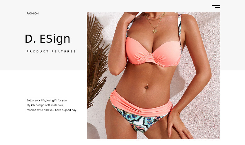 European and American Cross border Sexy bikini bikini Women s Printed Split Swimsuit Women s Large Size Swimsuit Set for Chubby Girls