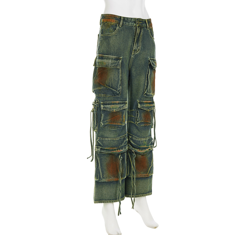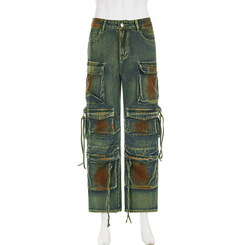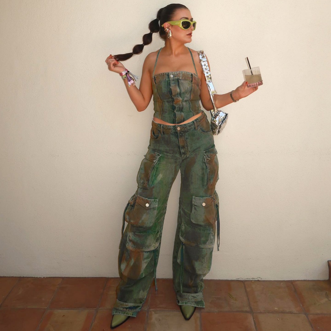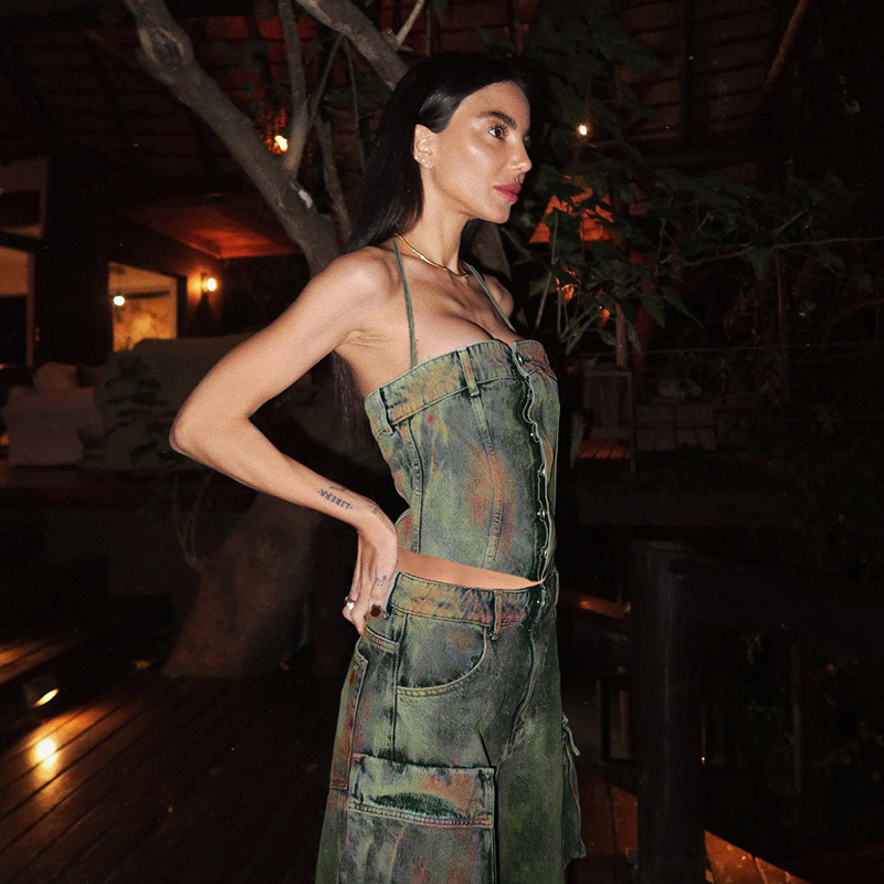 European and American Fashion Street Women s Heavy Industry Wash Gradual Color Hanging Neck Lace Vest Zipper Collar Tube Top Sling