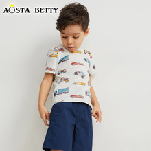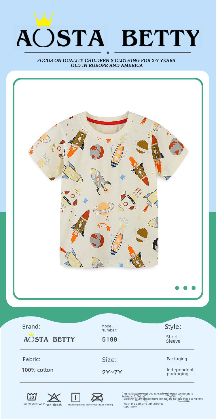 European and American style boys short sleeve T shirt summer new children s knitted cotton children s T shirt cartoon printing a generation of hair