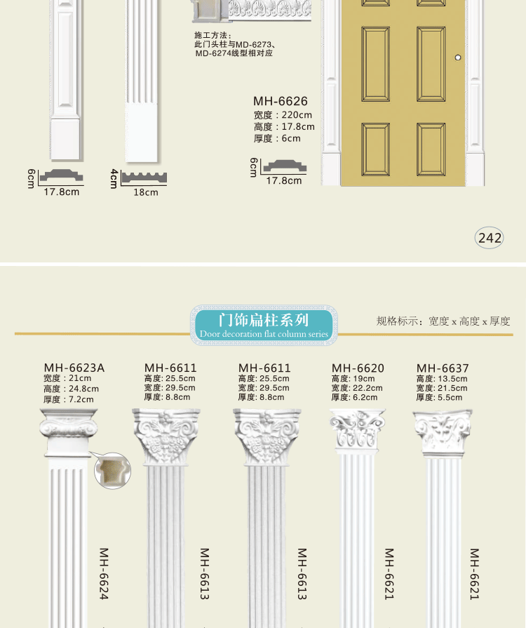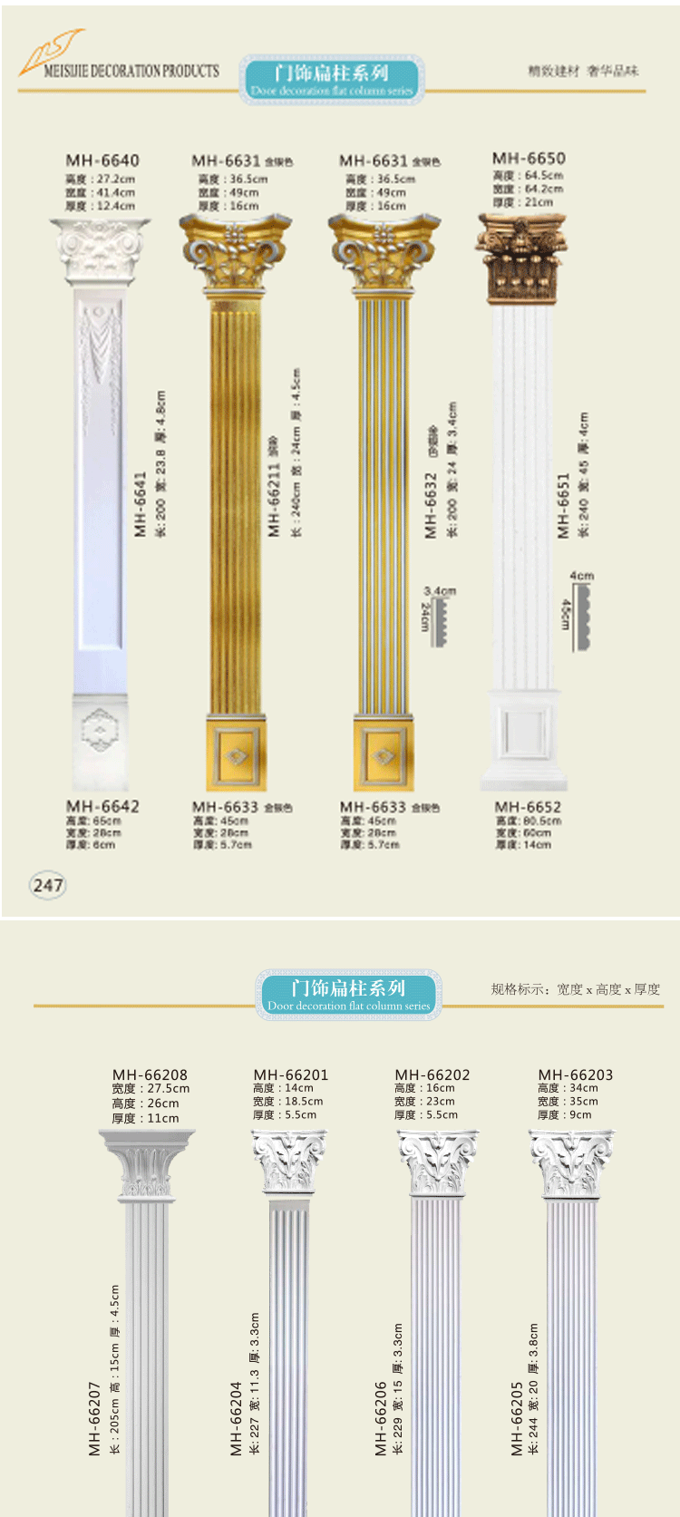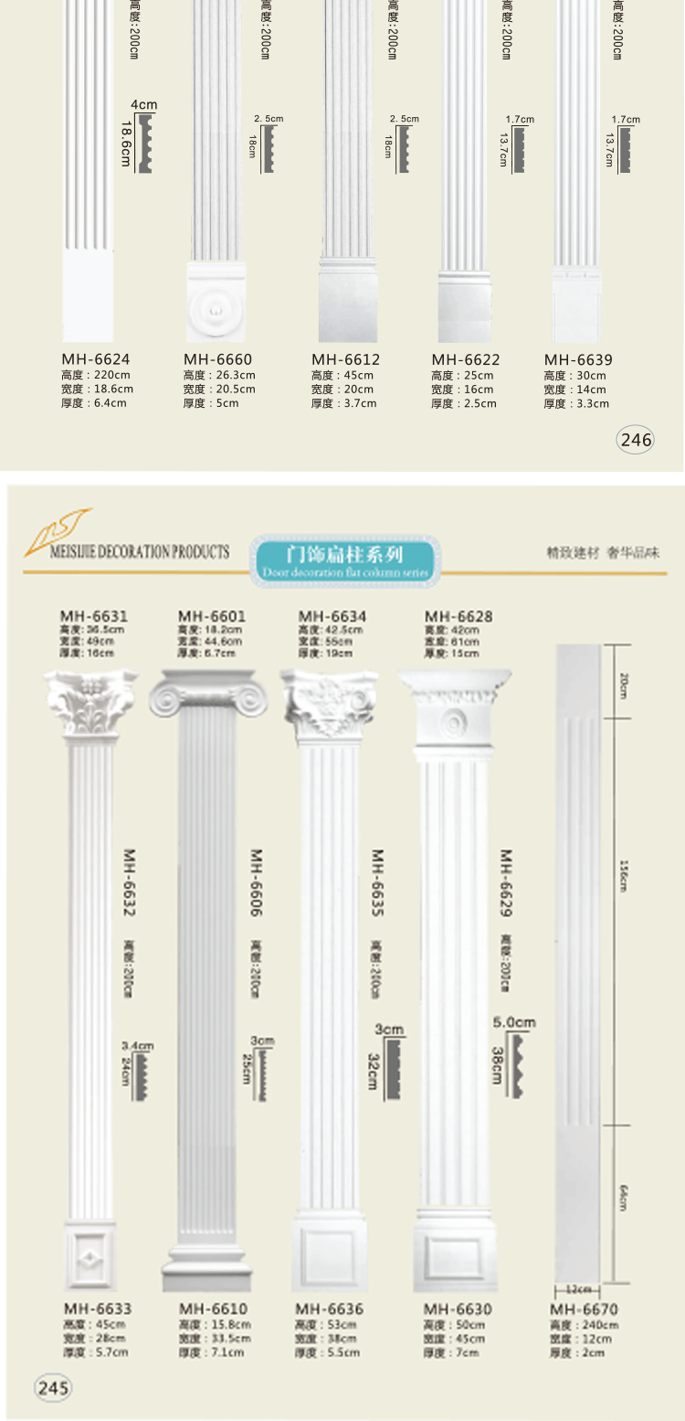 European style PU Roman column square flat decorative lines living room TV background wall frame indoor plaster door head