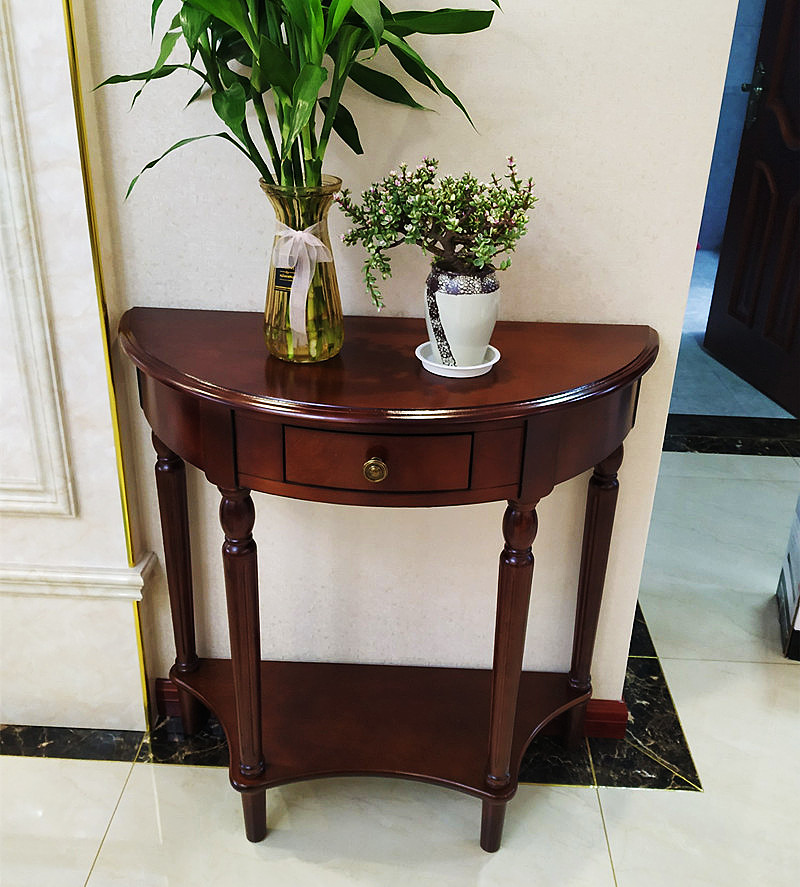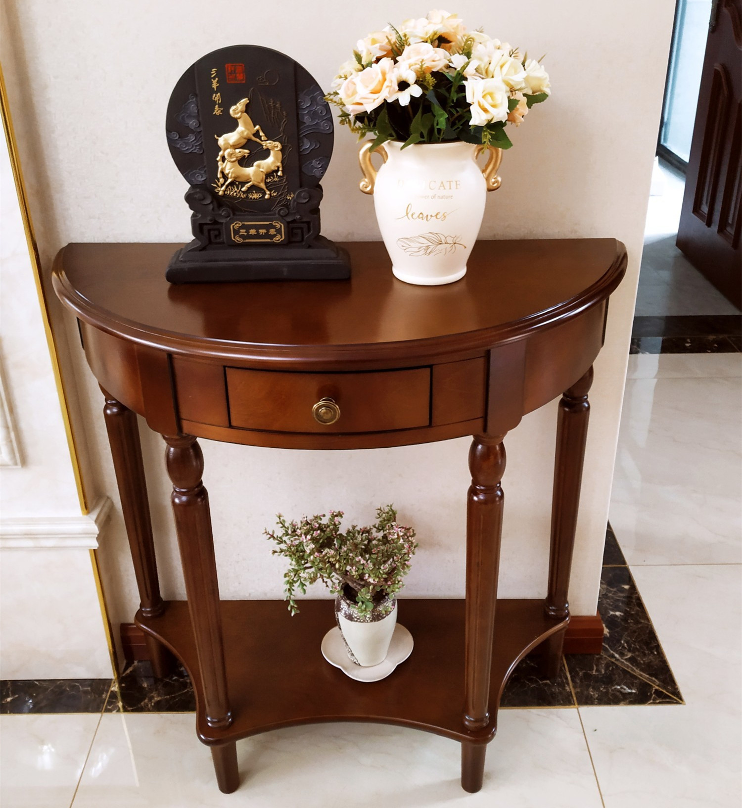 European style solid wood hallway table partition cabinet American hallway cabinet long table Wall corridor semicircle hallway table new Chinese style