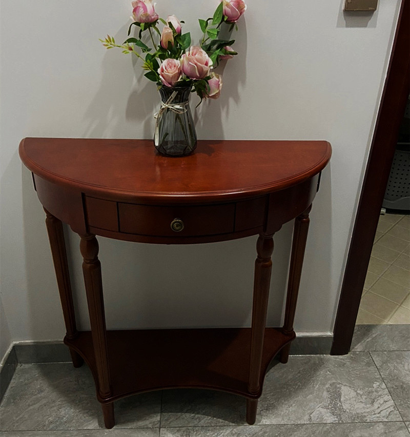 - Cherry-colored entrance table 900 long 380 wide 875 high