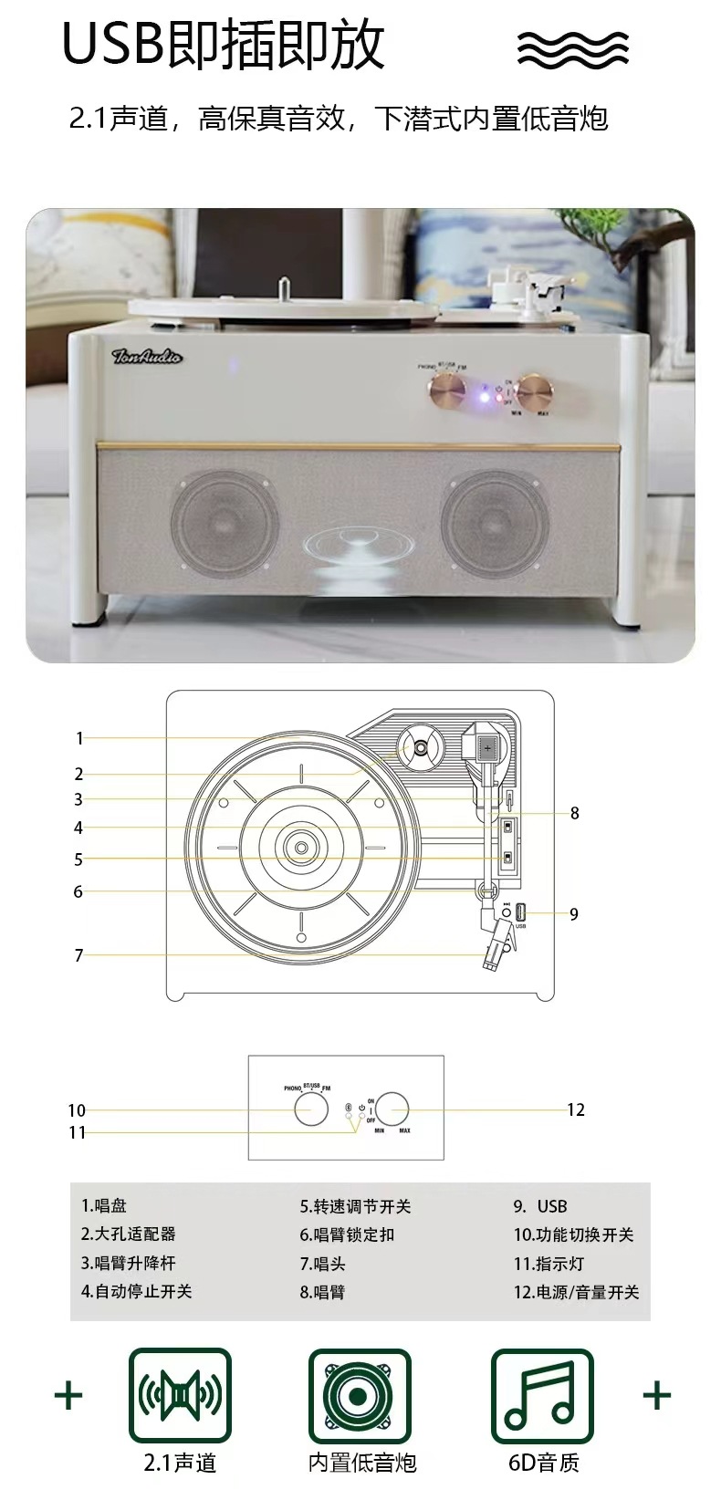European style vinyl record player phonograph Bluetooth audio radio multi functional integrated speaker living room decoration gift