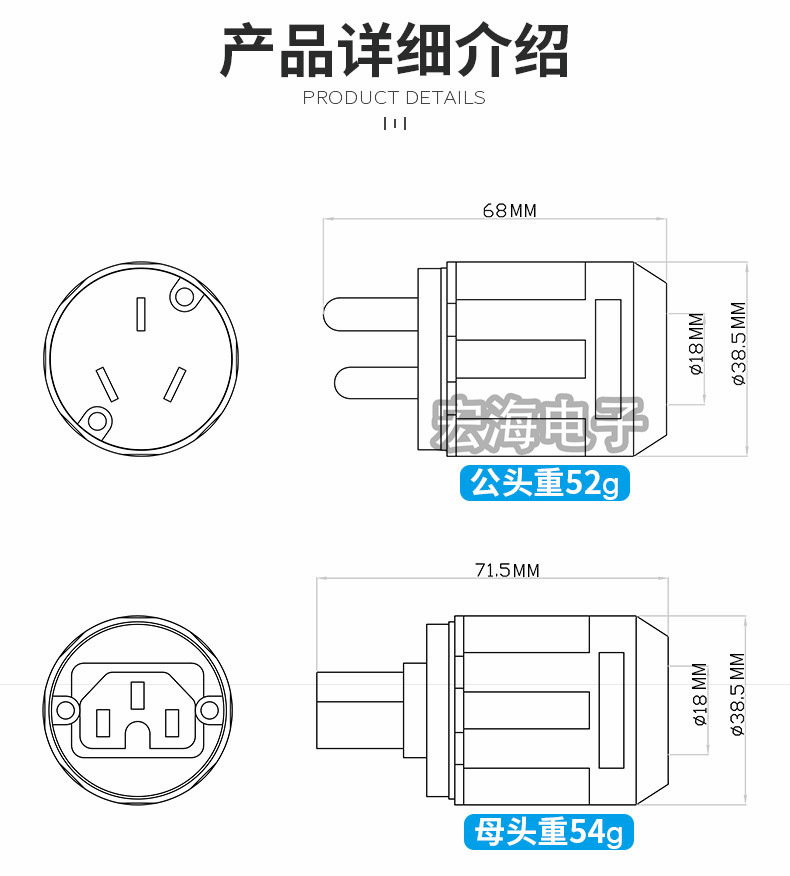 Euryad Power Plug Pure Copper Gold Plated Rhodium Plated GB Fever Audio Plug Plug Tail HiFi Power Amplifier Speaker