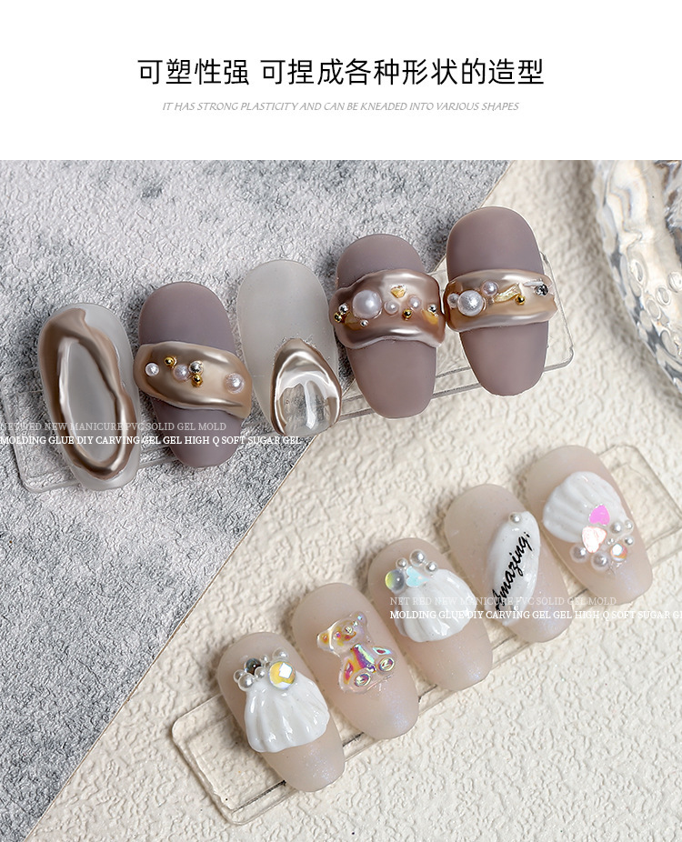 Explosive elastic nail art pvc gummy carved glue solid gel high permeability three dimensional modeling phototherapy nail glue shaping