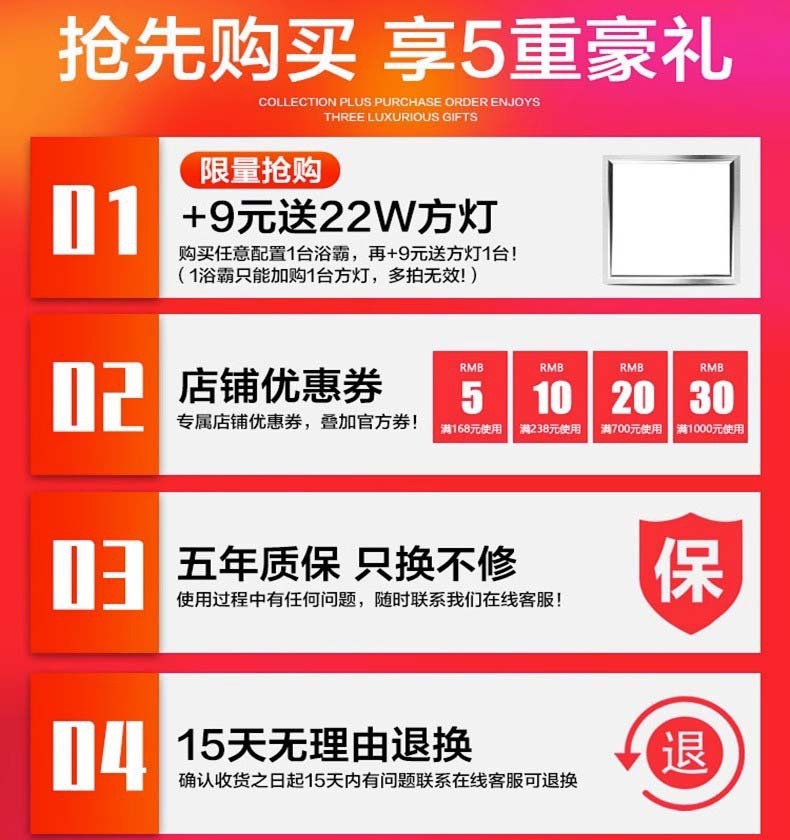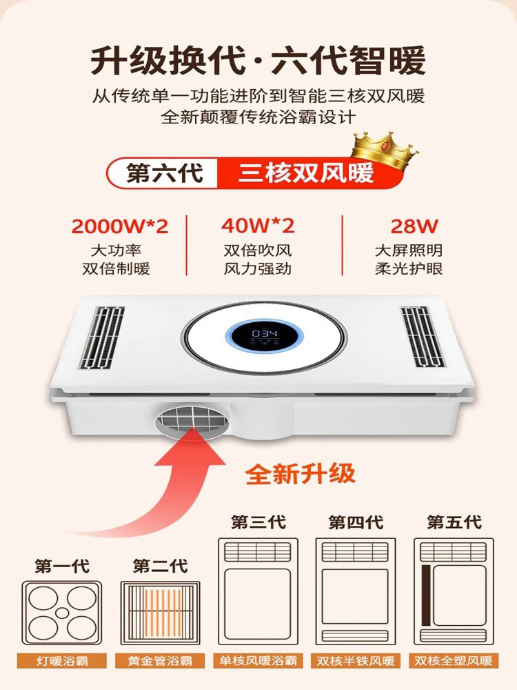 Exquisite good lady bath heater air heating bath heater ring air outlet integrated heating ceiling exhaust fan five in one heater
