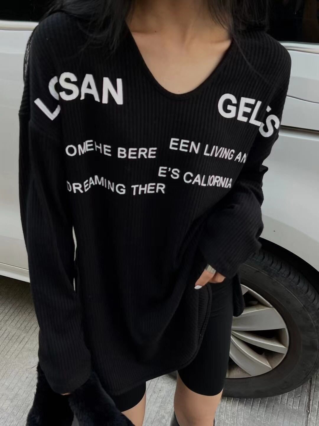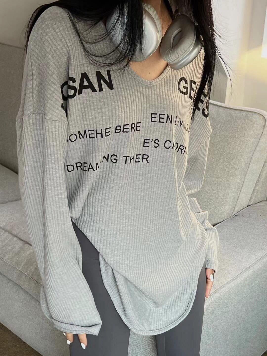 Extra Large size 300kg U collar irregular split long sleeved T shirt for women chubby girl Spring and Autumn New loose bottoming shirt top