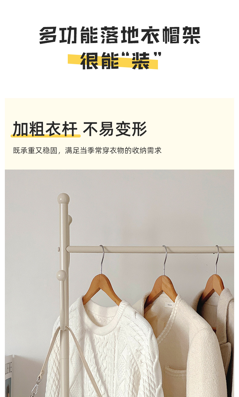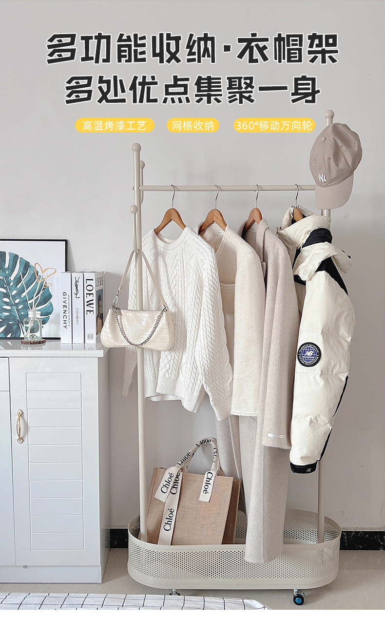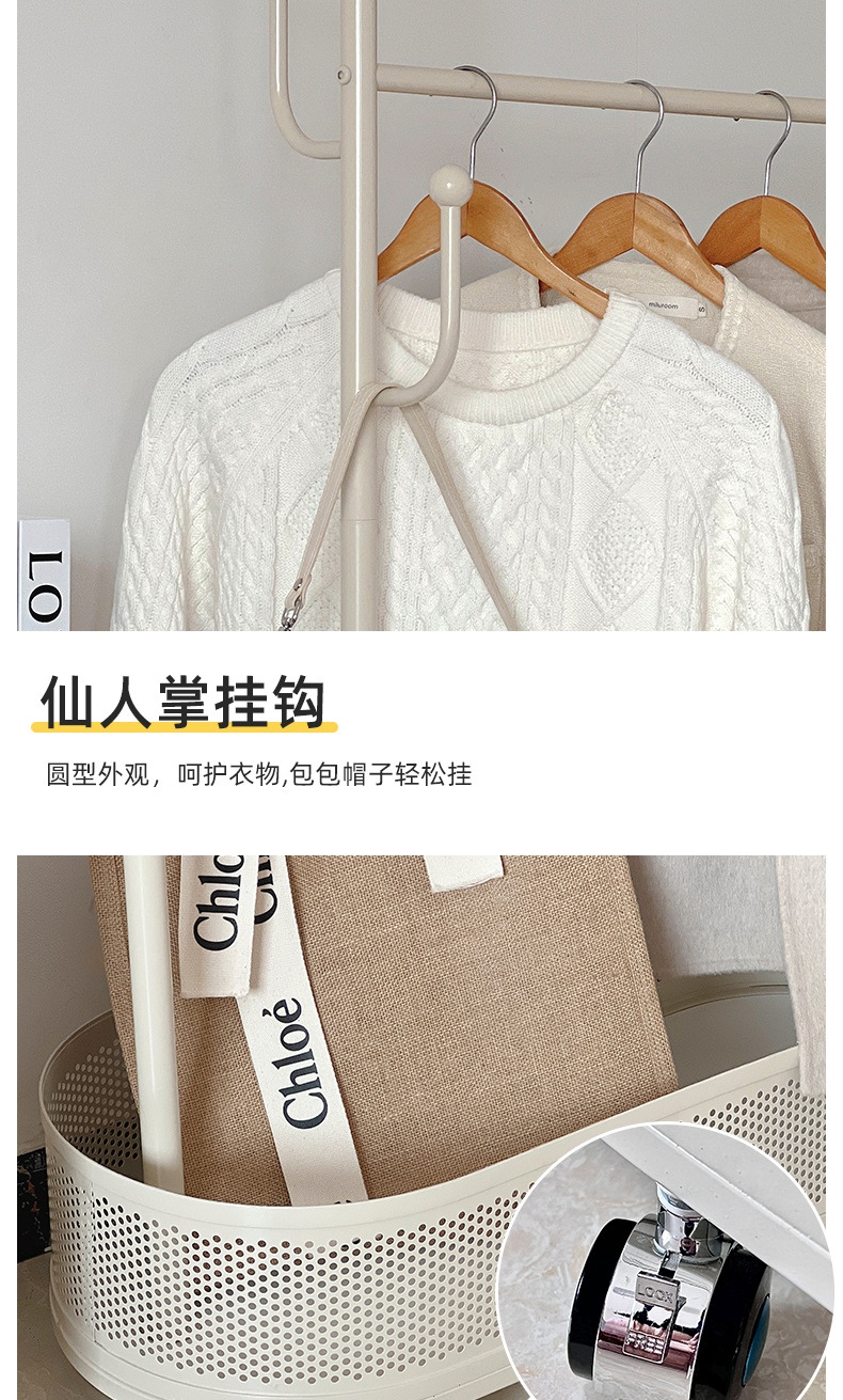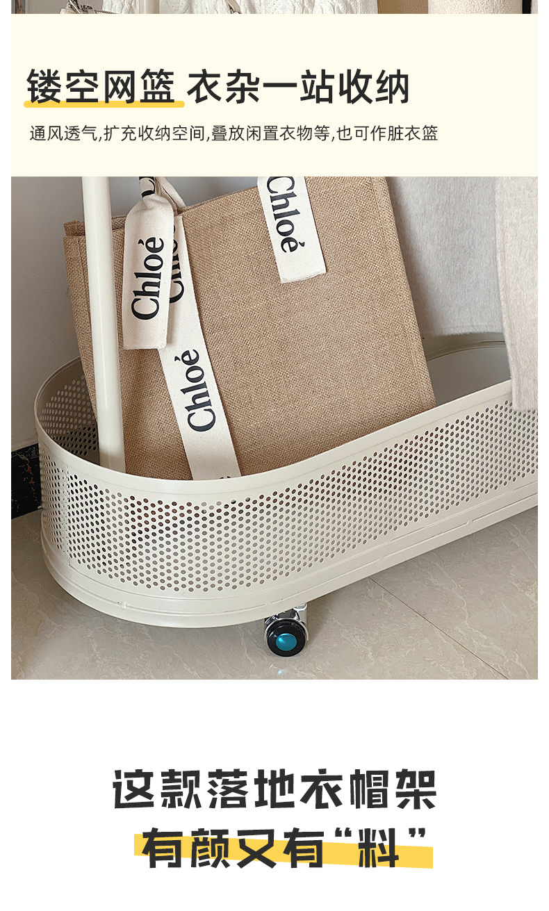 Extra thick load bearing floor iron hanger dirty clothes basket hanger movable coat rack with wheels bedroom clothes rack