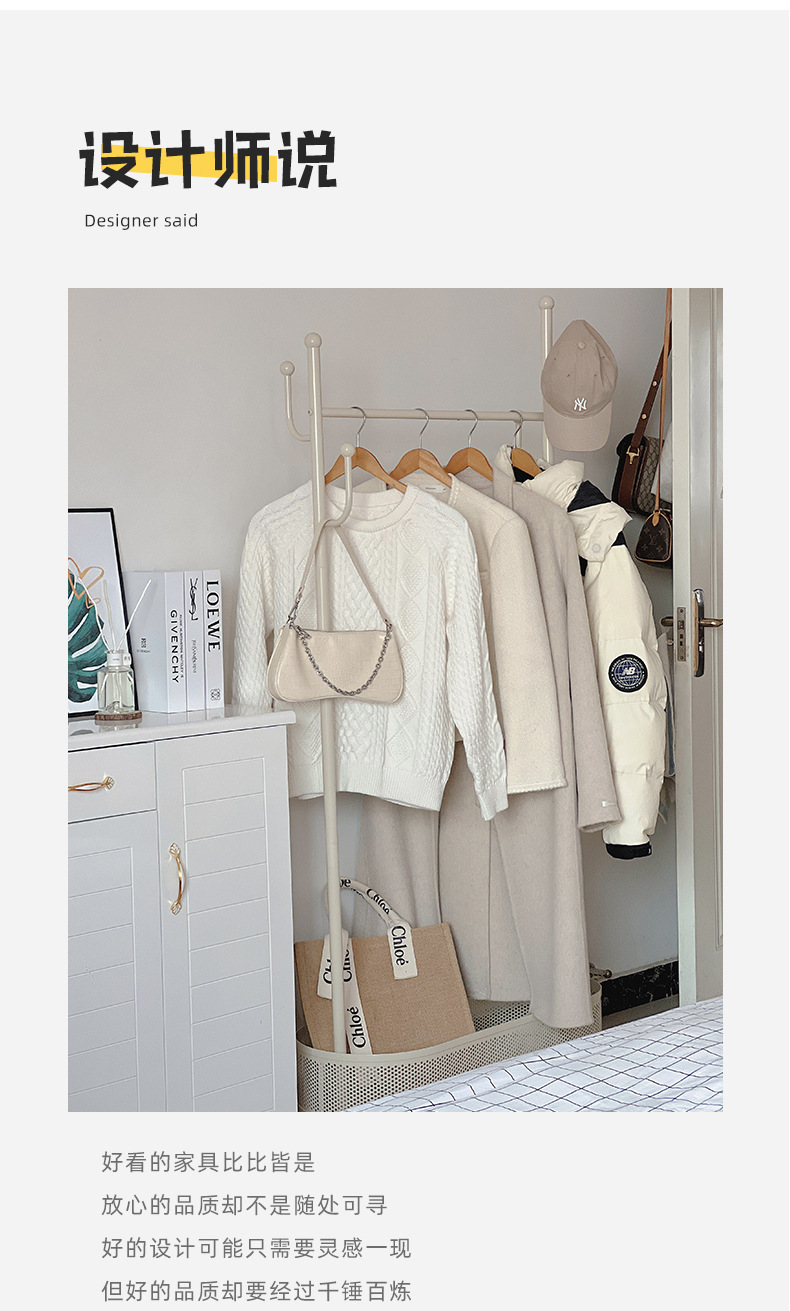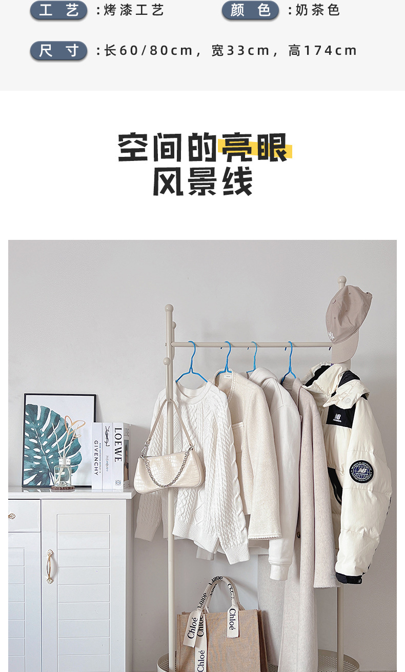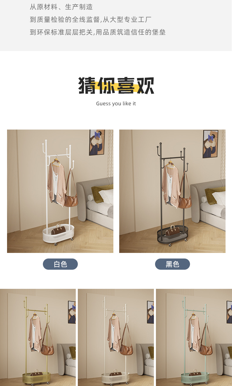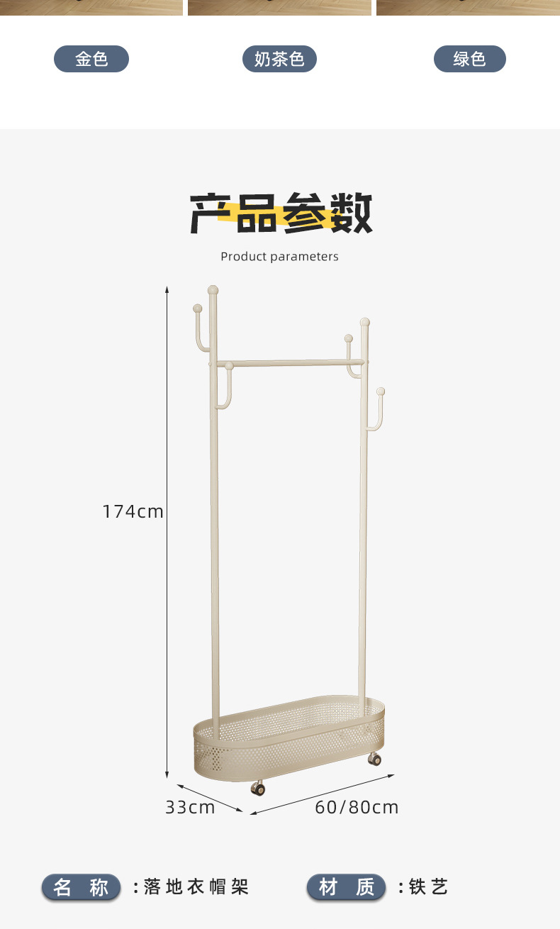 Extra thick load bearing floor iron hanger dirty clothes basket hanger movable coat rack with wheels bedroom clothes rack