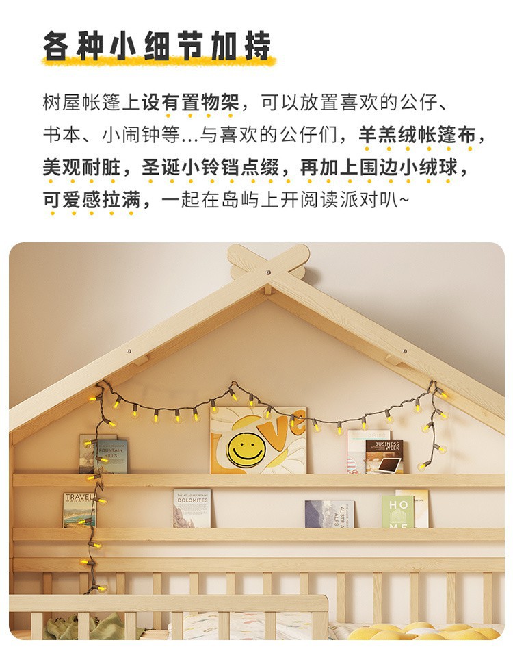 F Let All Solid Wood Children s Bed Girls Bed Small Bed with Trailing Bed Guardrail Household Baby Single Bed Boy Tree House Bed