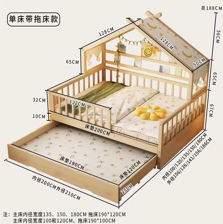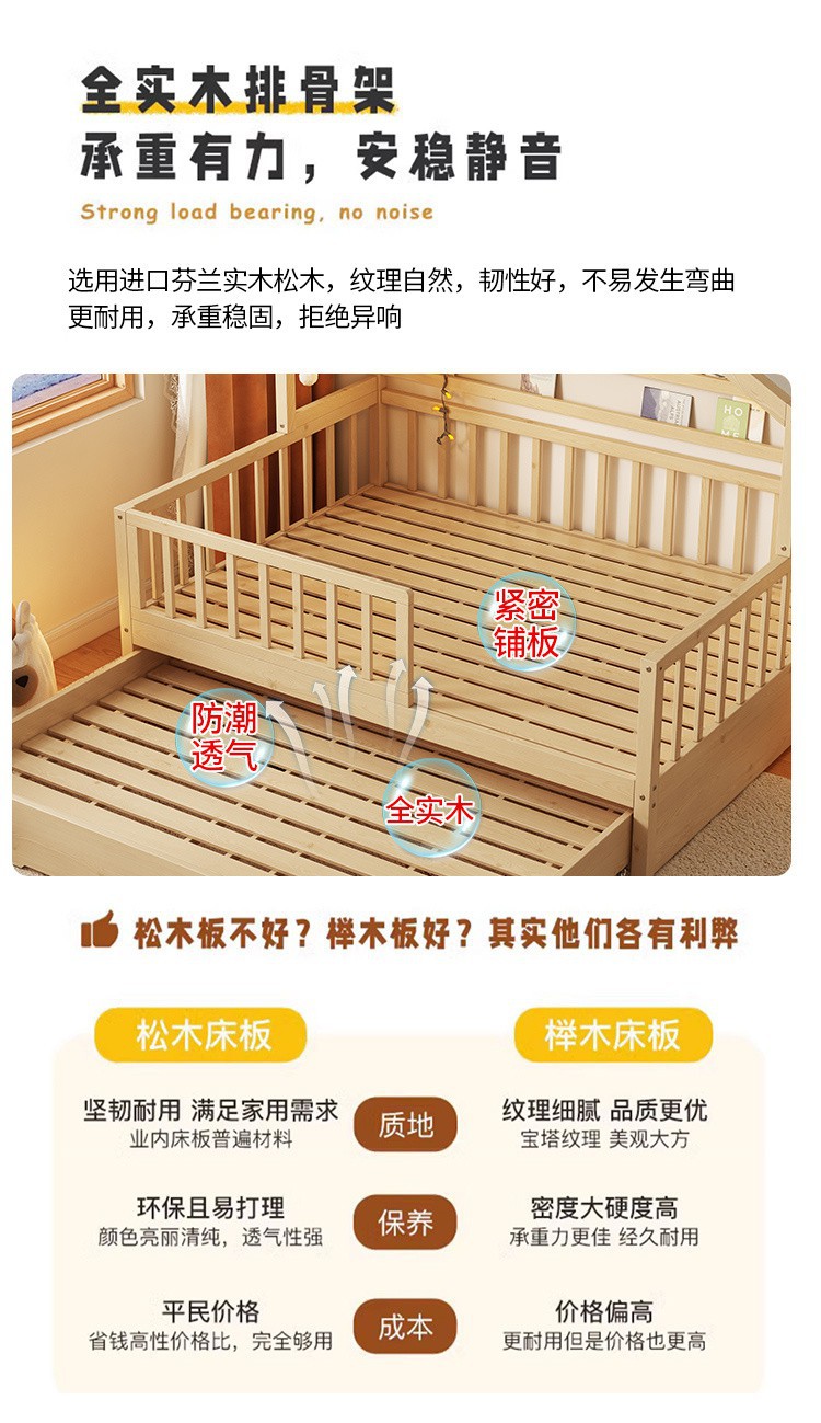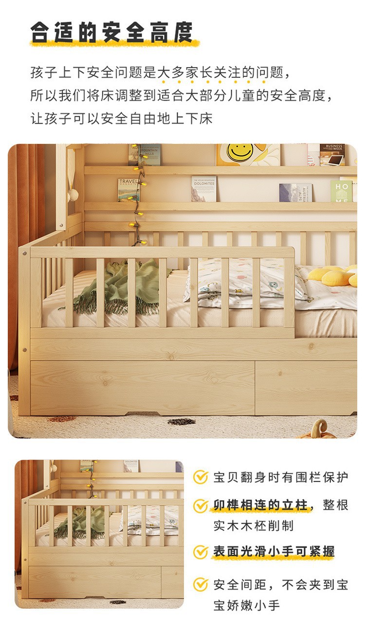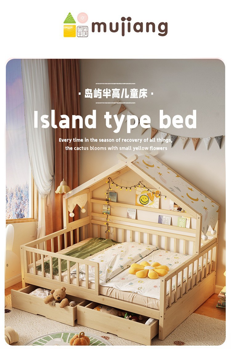 - Beech log popsicle bed four-sided guardrail tow bed drawer