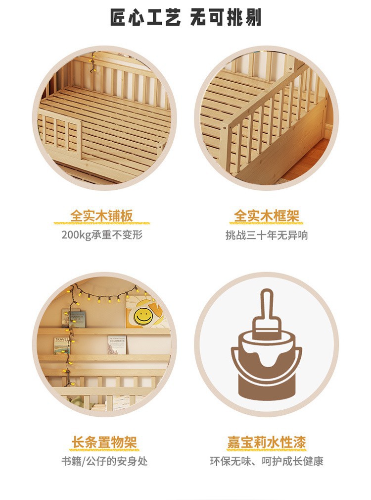 - [No paint] log popsicle bed four-sided guardrail drawer