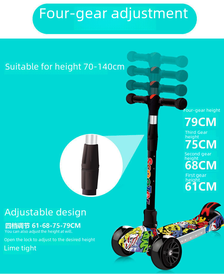 Factory Direct children s scooter 2 4 6 10 years old male and female baby big wheel flash pulley children folding car