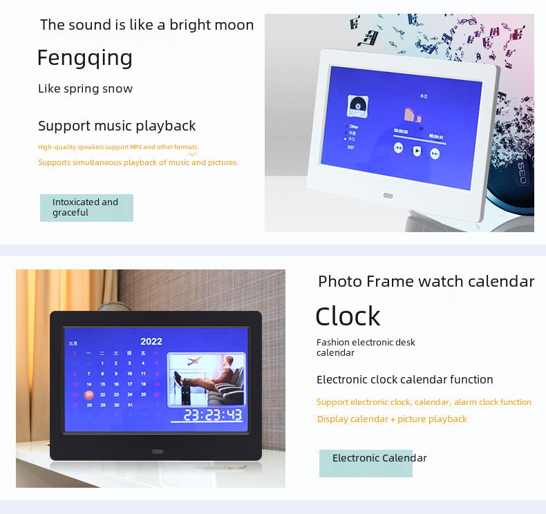 Expandable Features:This 7-inch digital frame offers expandable features, supporting both music and video play. It enhances the overall experience by providing a multimedia display.