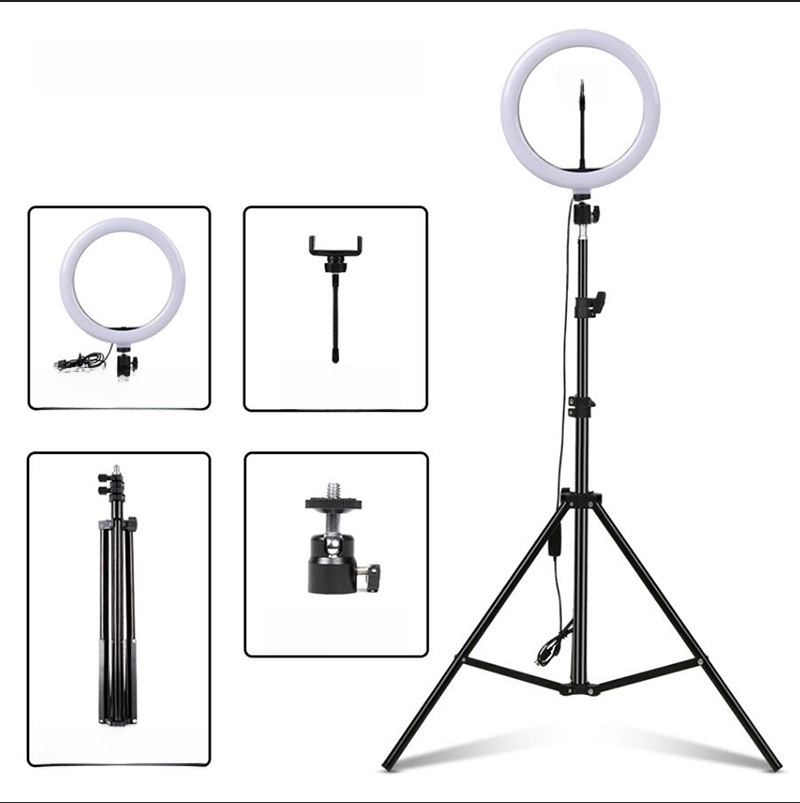 - 26cm -10 inch light supplement (with mobile phone clip + USB remote control +360 pan-tilt) +2.1 m light stand