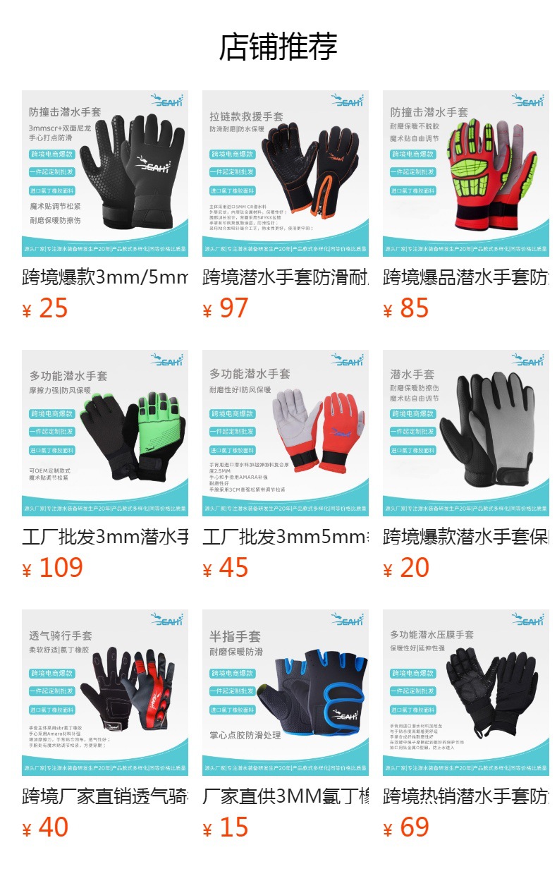 厂家直供3MM氯丁橡胶潜水手套防滑耐磨迷彩防刺抓鱼潜水手套跨境