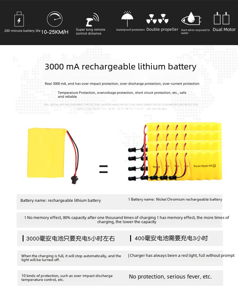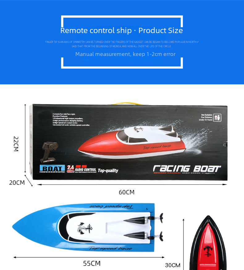 - 30cm blue remote control boat (with 1 200-minute battery)