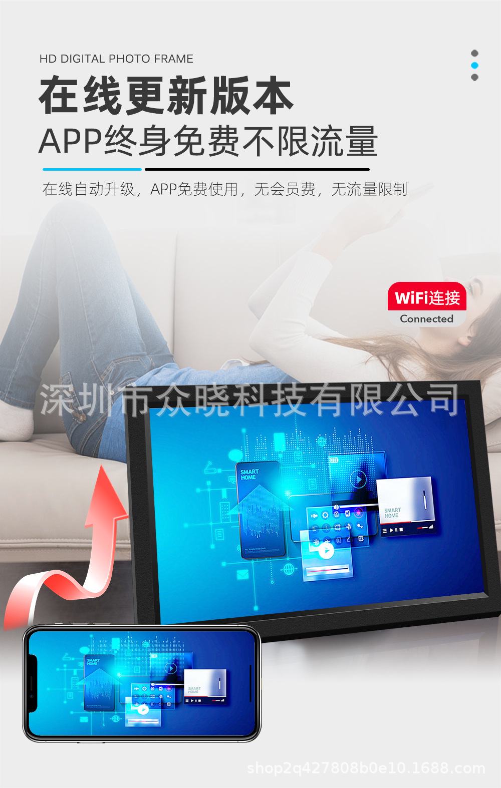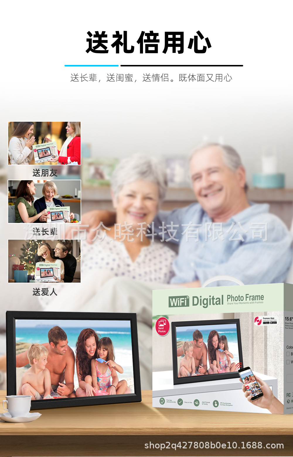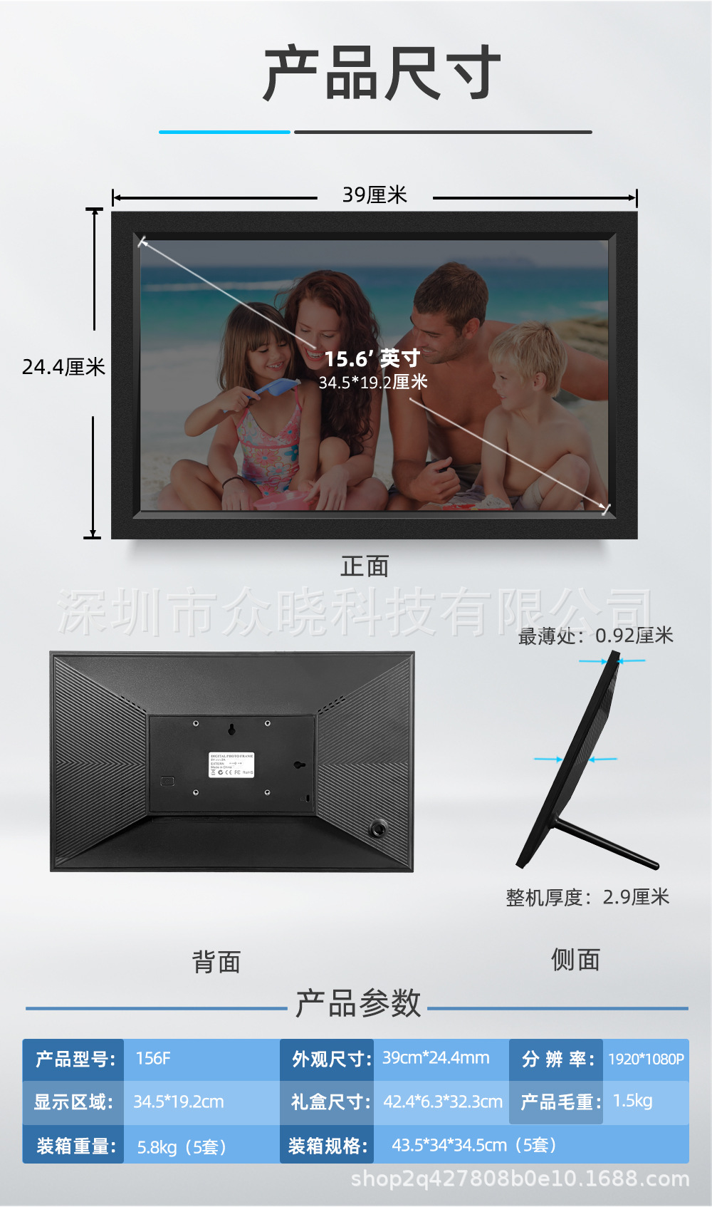 Factory in stock Uhale Vphoto15.6 inch iPS touch screen wifi send photo smart photo frame