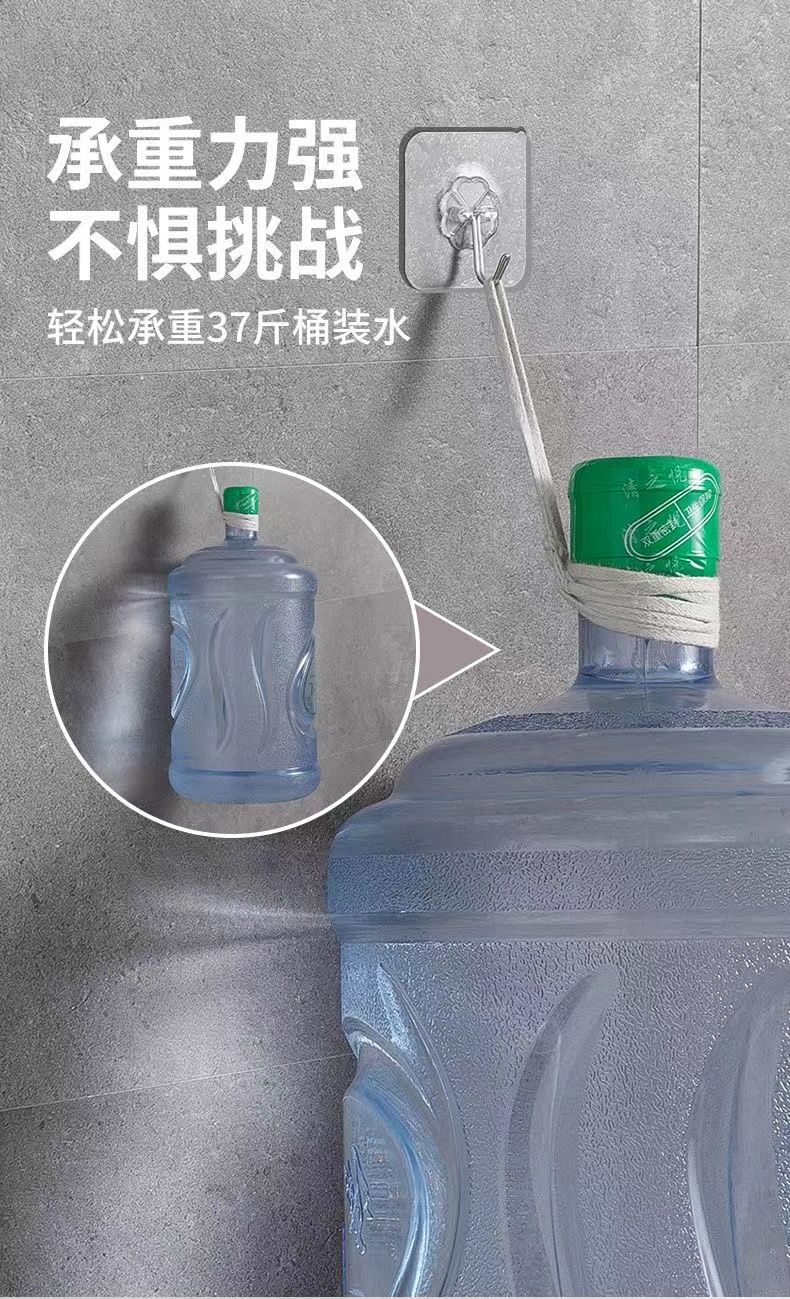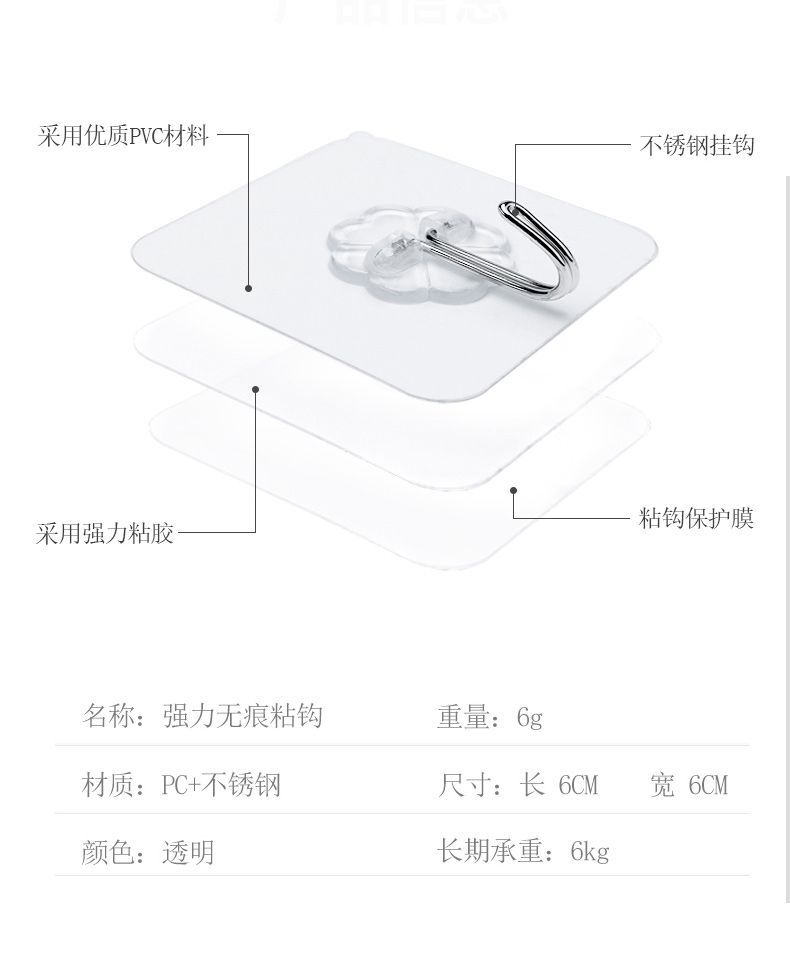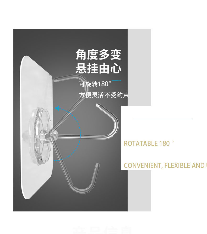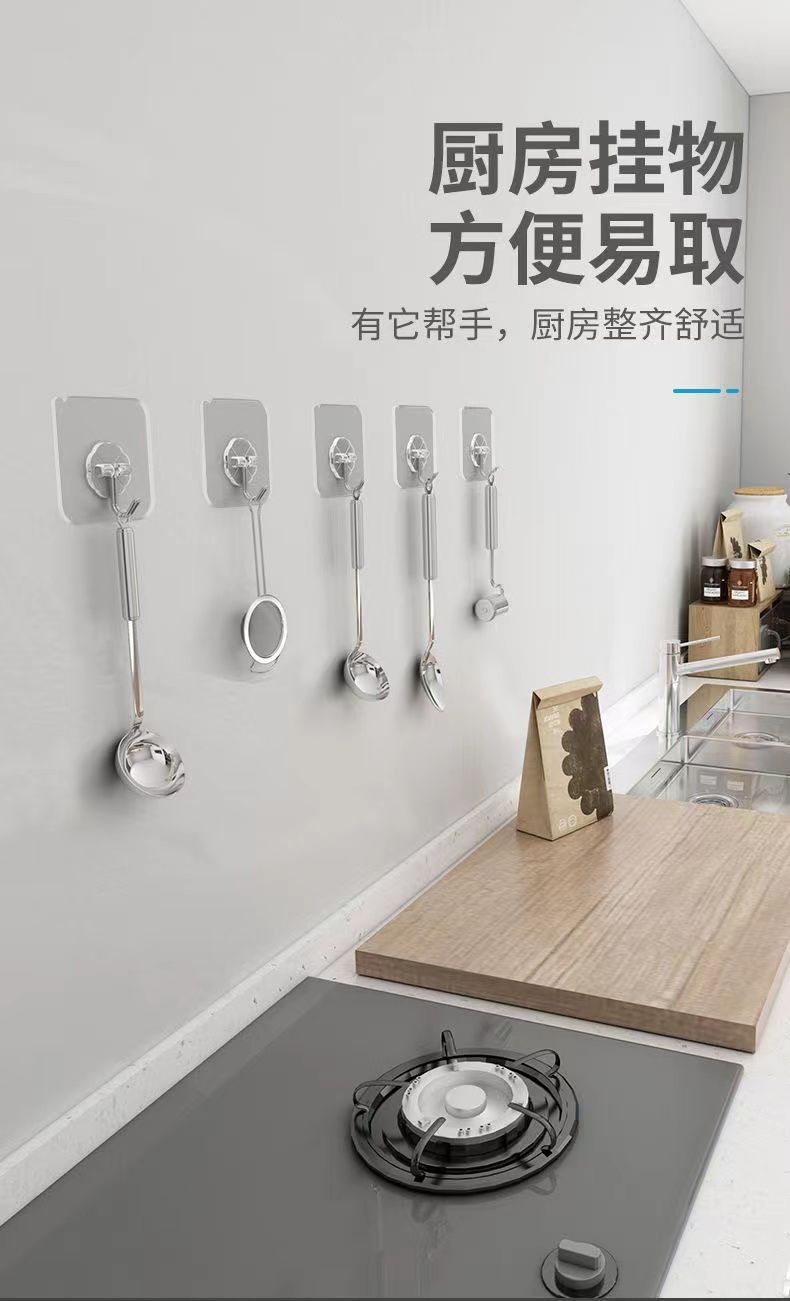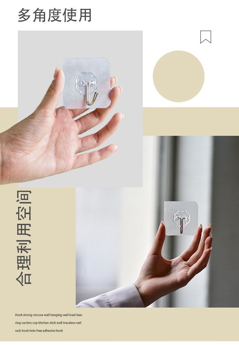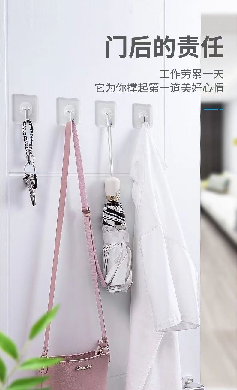 Factory strong square transparent hook load bearing seamless nail free door hook wall hanging Bathroom Kitchen coat and hat sticky hook