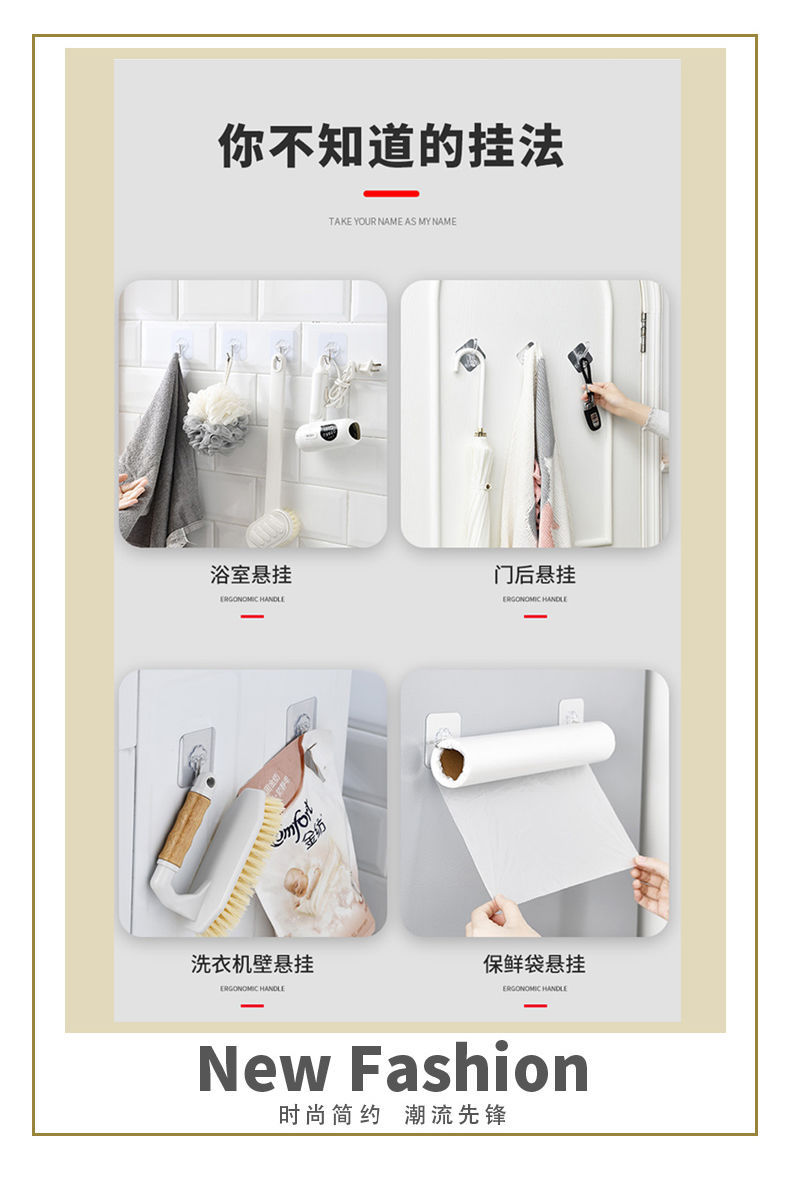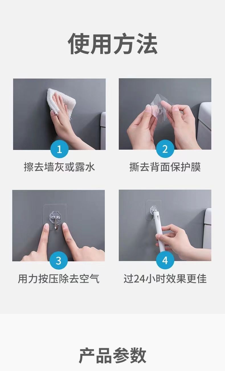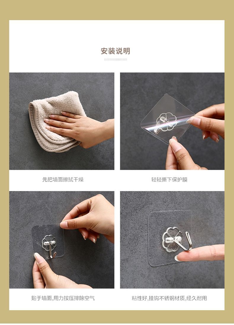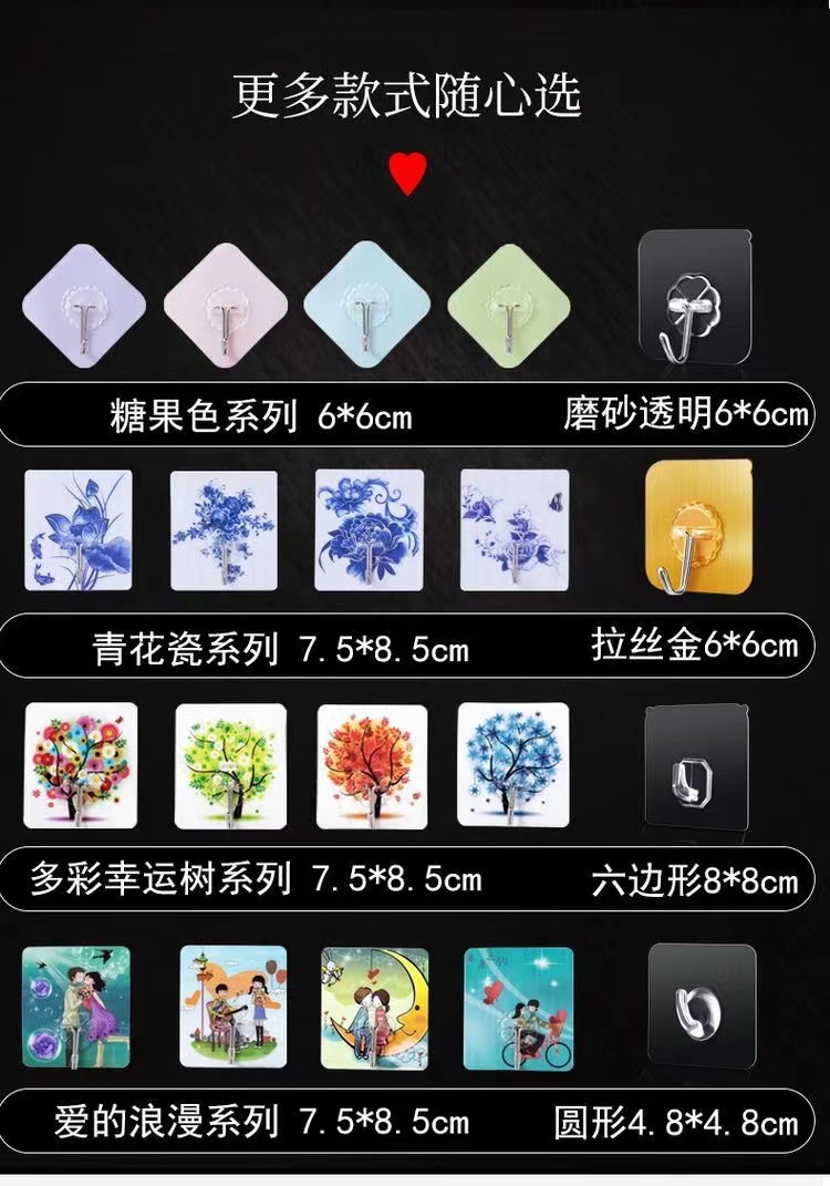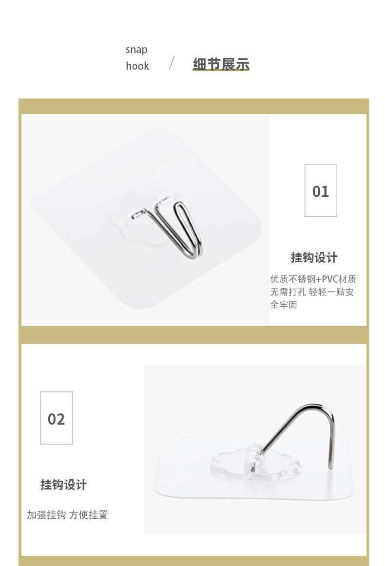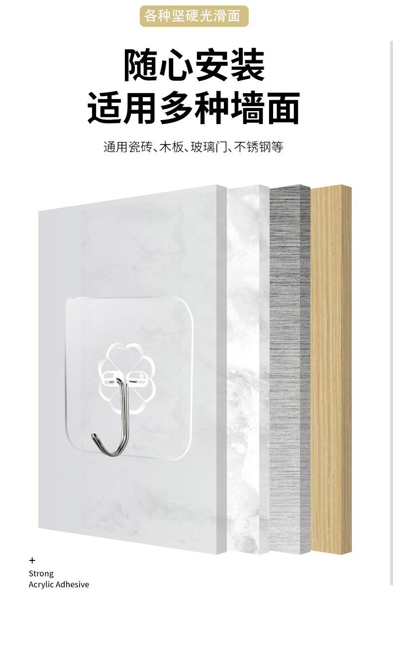 Factory strong square transparent hook load bearing seamless nail free door hook wall hanging Bathroom Kitchen coat and hat sticky hook