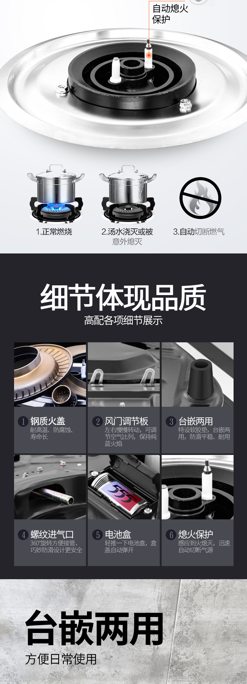 Factory wholesale gas stove household liquefied gas natural gas fire stove embedded flameout protection stove desktop stove