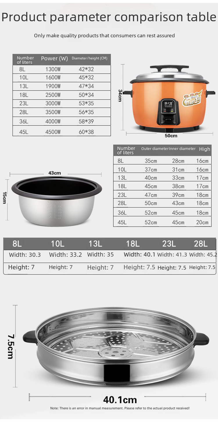 Factory wholesale rice cooker large capacity 8 45L canteen commercial rice cooker hotel dining hall large rice cooker