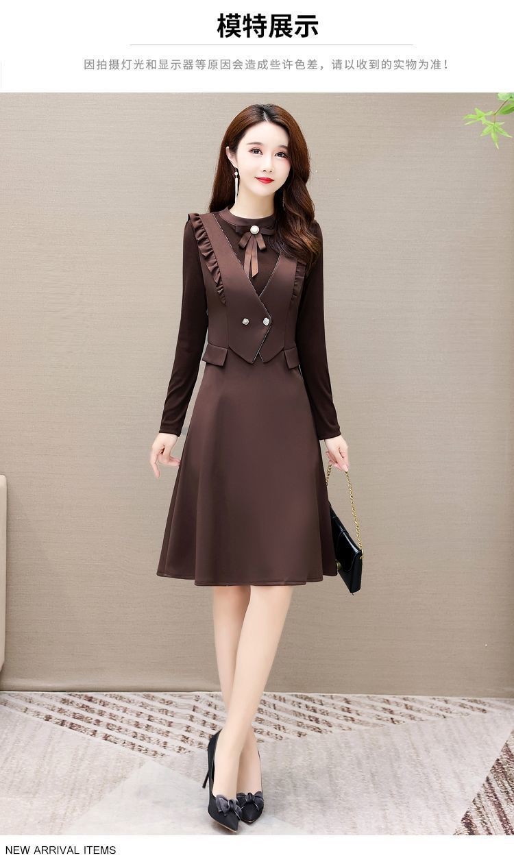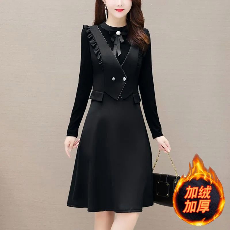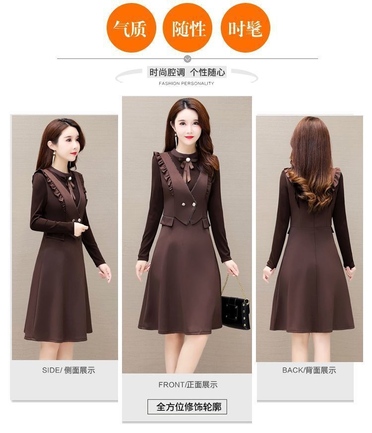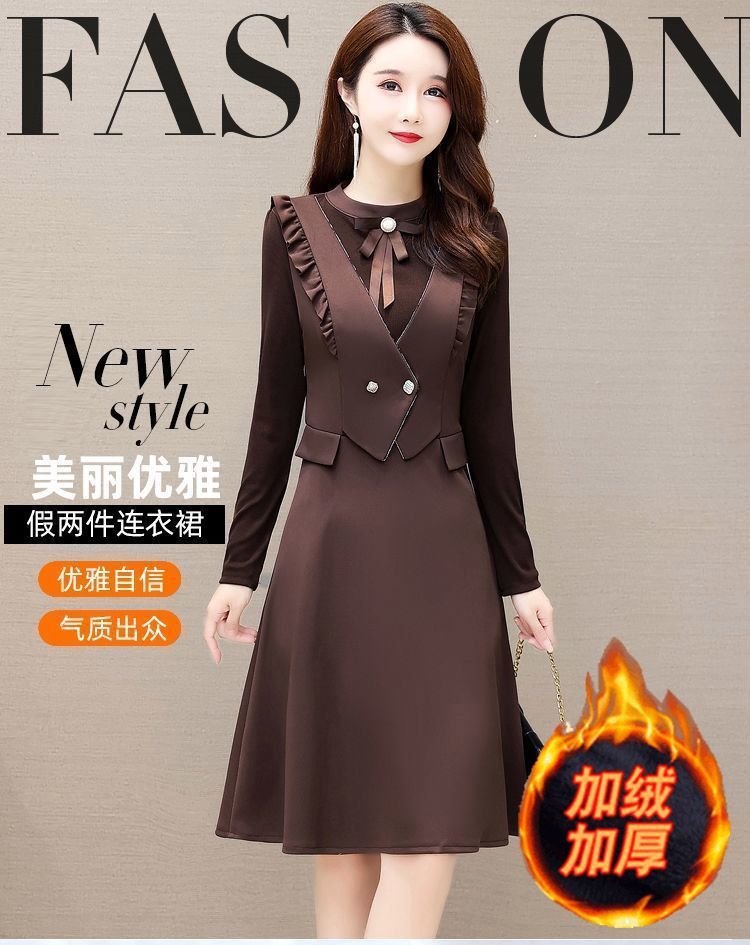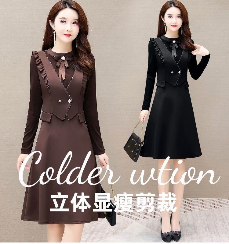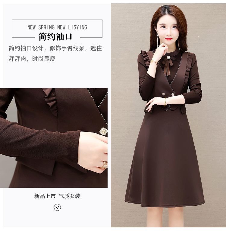 Fake Two Large Size Dress 2024 Spring and Autumn New Women s Tight Waist Covering Belly Slimming Elegant Small Age reducing Dress