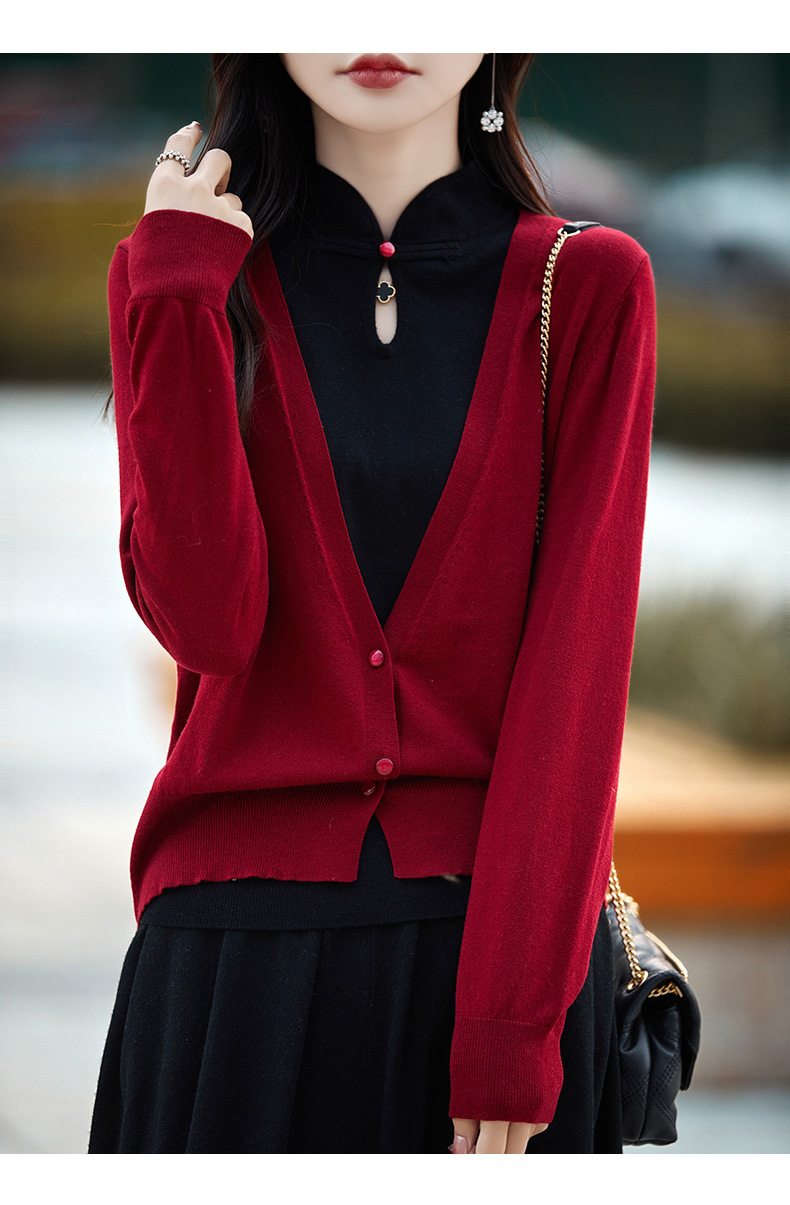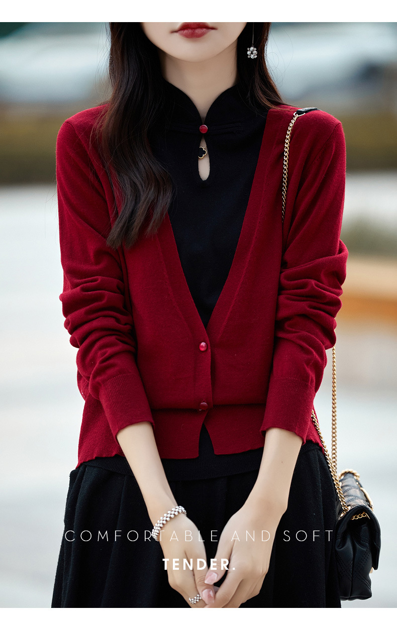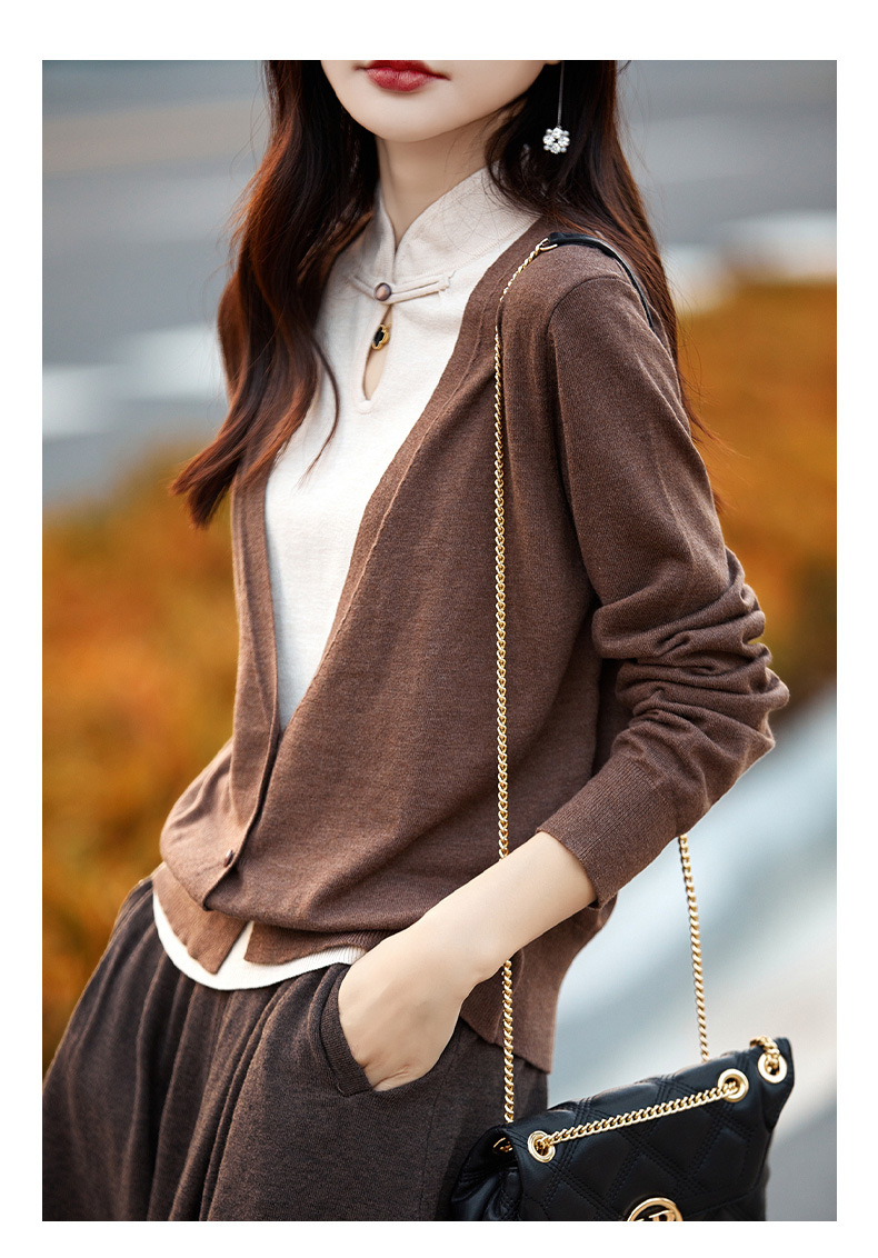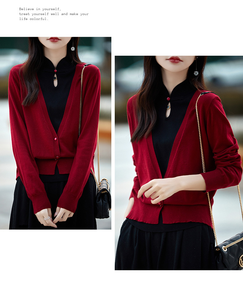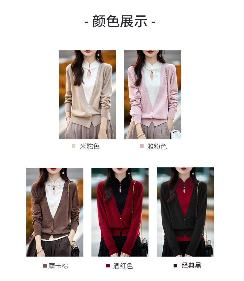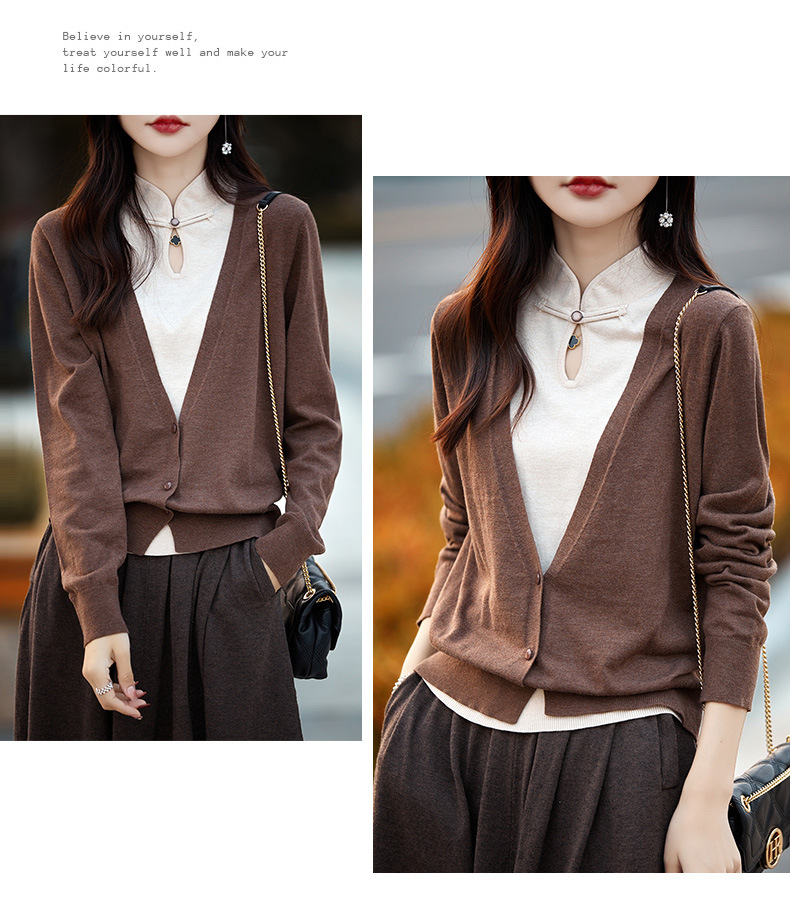 Fall 2023 cheongsam collar fake two piece wool sweater women s high end elegant retro style wool knitted coat women