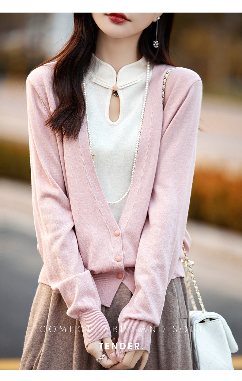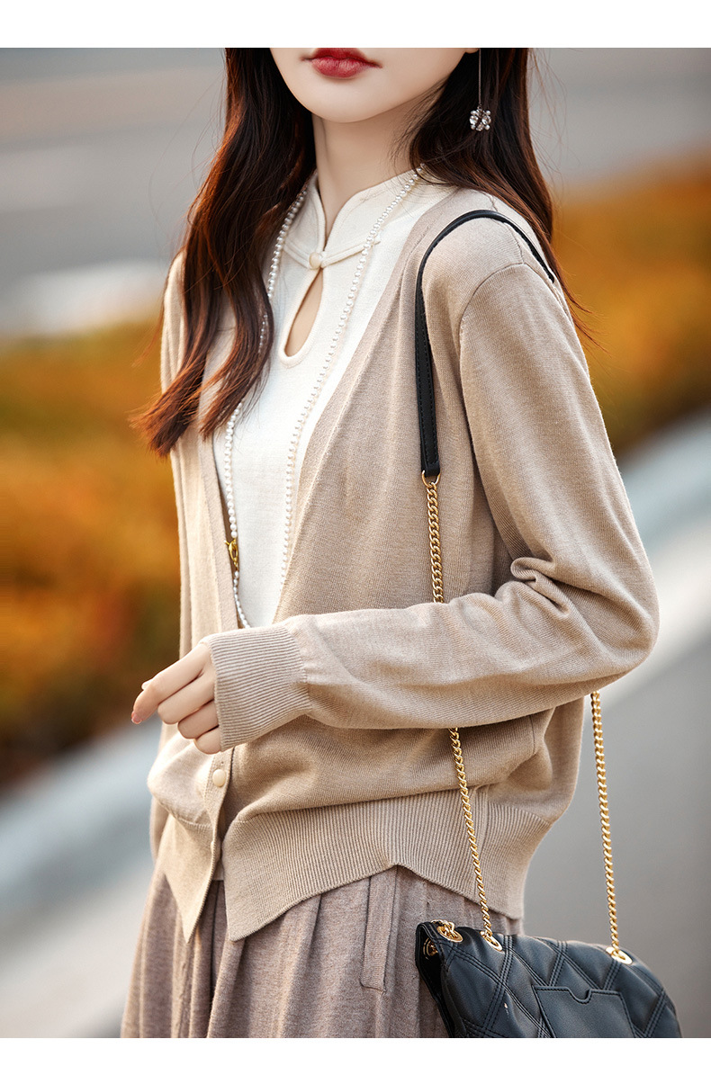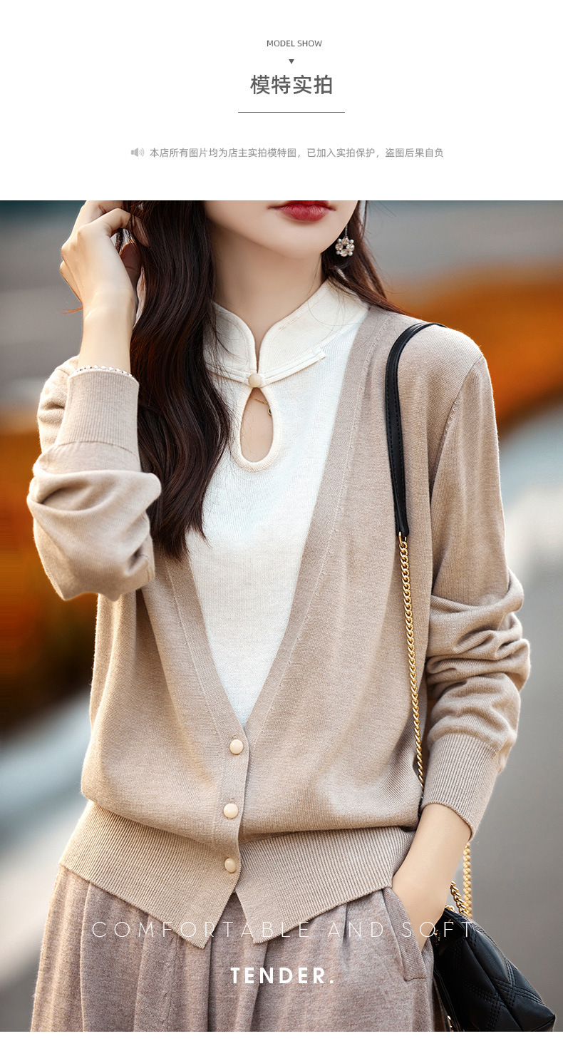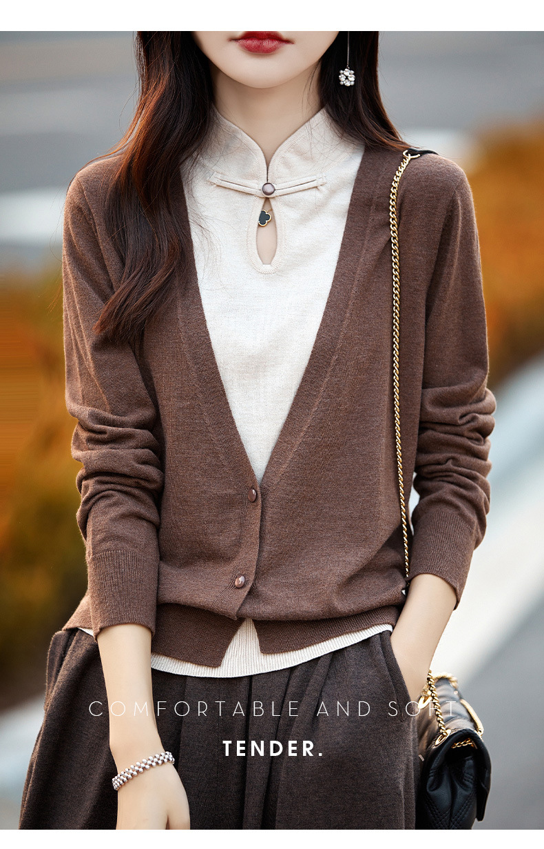 Fall 2023 cheongsam collar fake two piece wool sweater women s high end elegant retro style wool knitted coat women