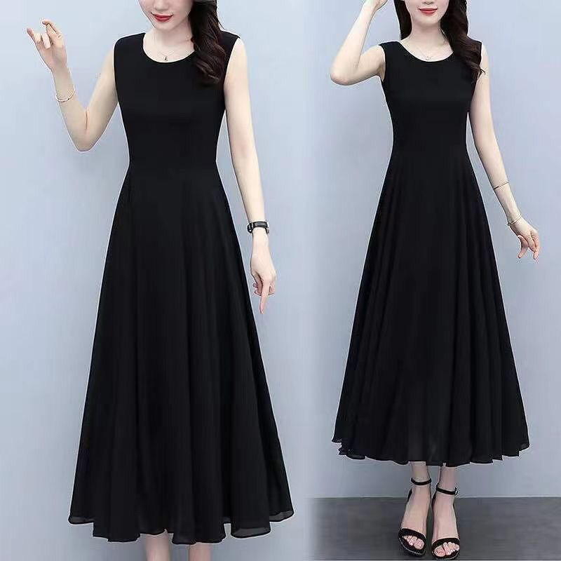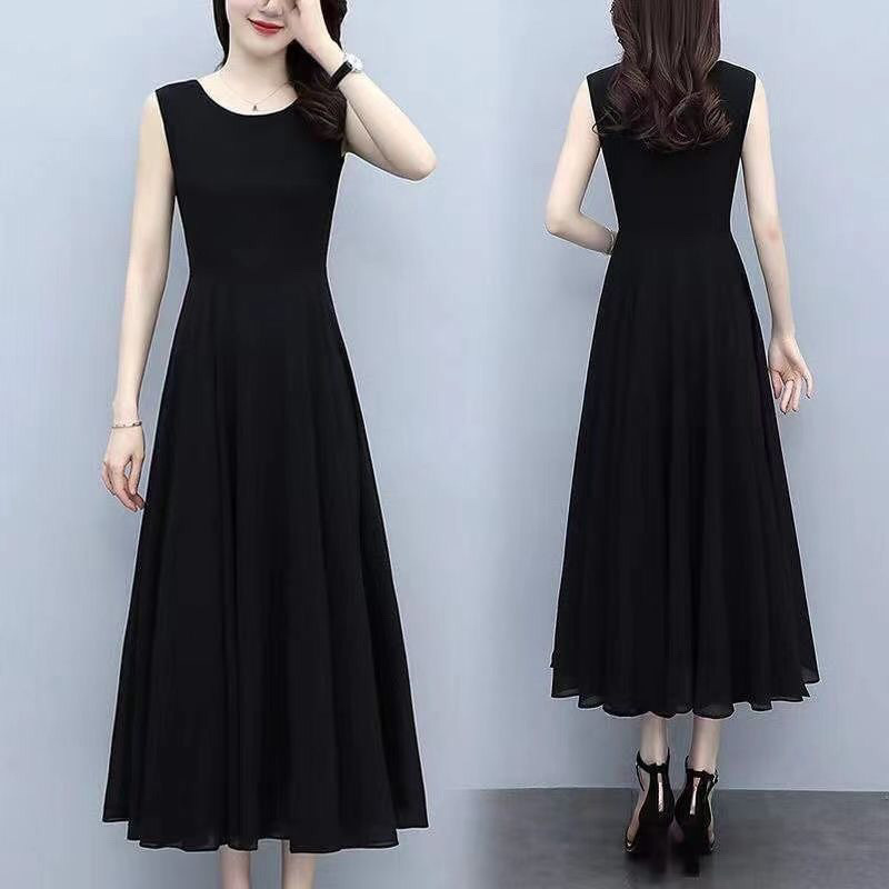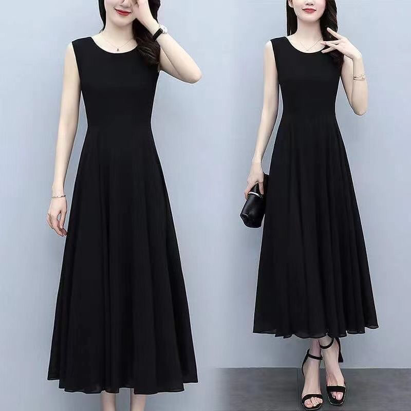 Fashionable Tight Waist Slimming Hepburn Style Small Black Sleeveless Vest Base Medium Long dress Spring and Summer plus size Women s Clothing