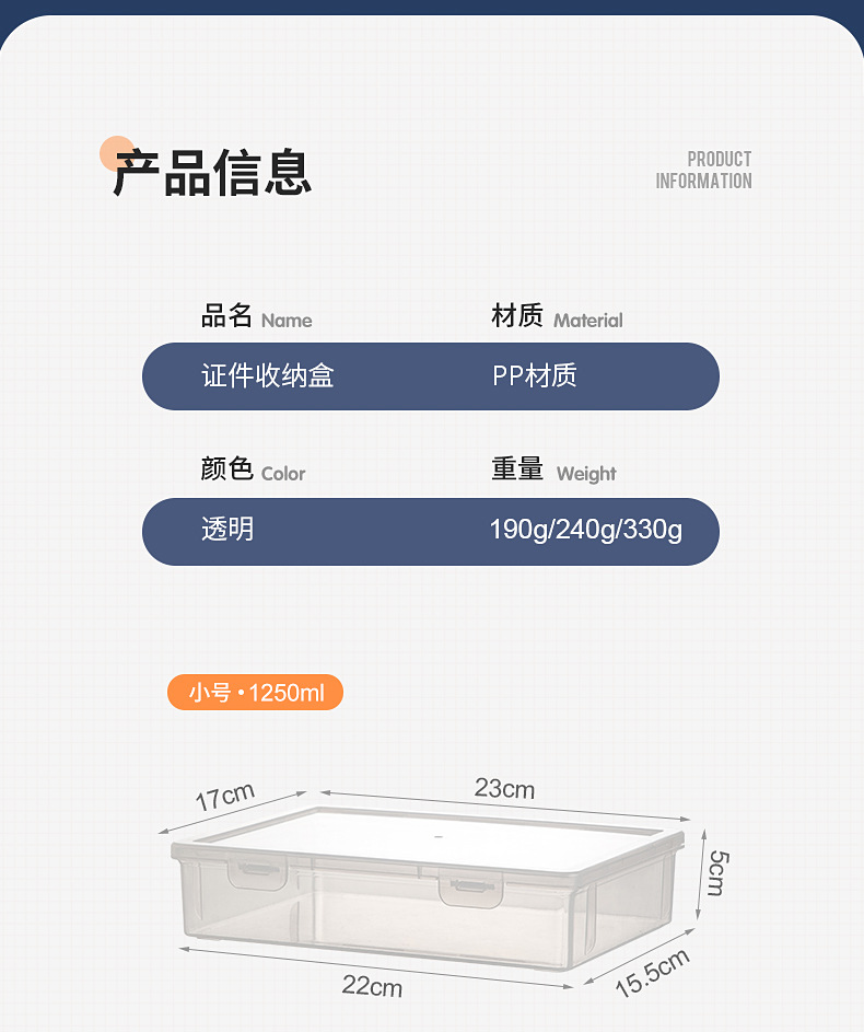 File storage box desktop office test paper storage household certificate storage box transparent material organizing file box